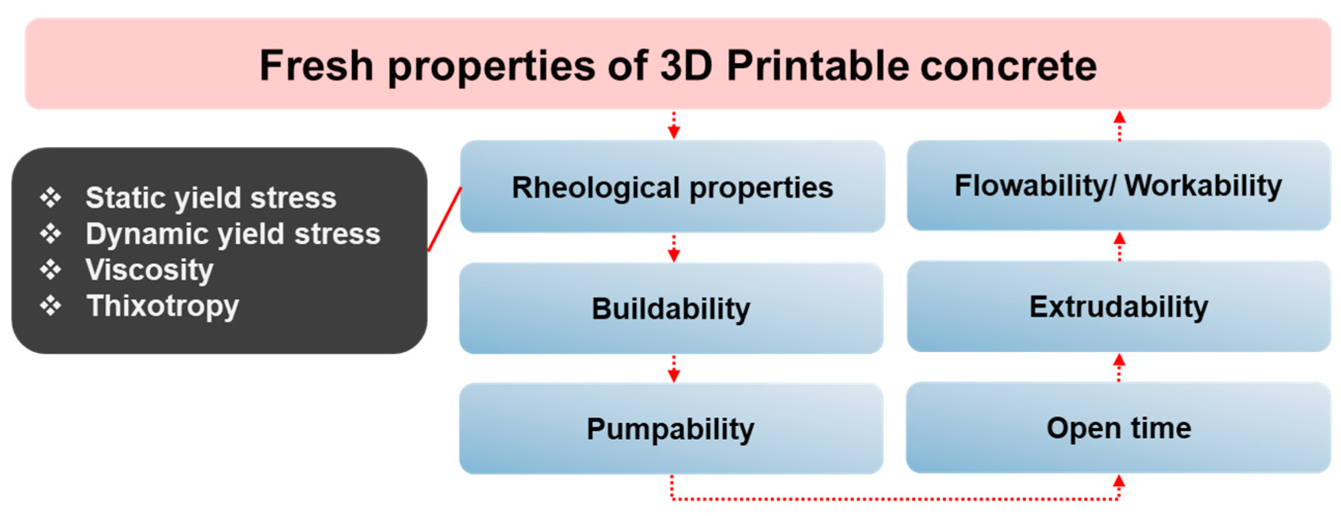 - Formulate dedicated test protocols for 3DPC that measure buildability, open time, interlayer adhesion, and anisotropic properties: These should address current limitations of cement-based standards and ensure reproducibility through round-robin or inter-laboratory validation.
