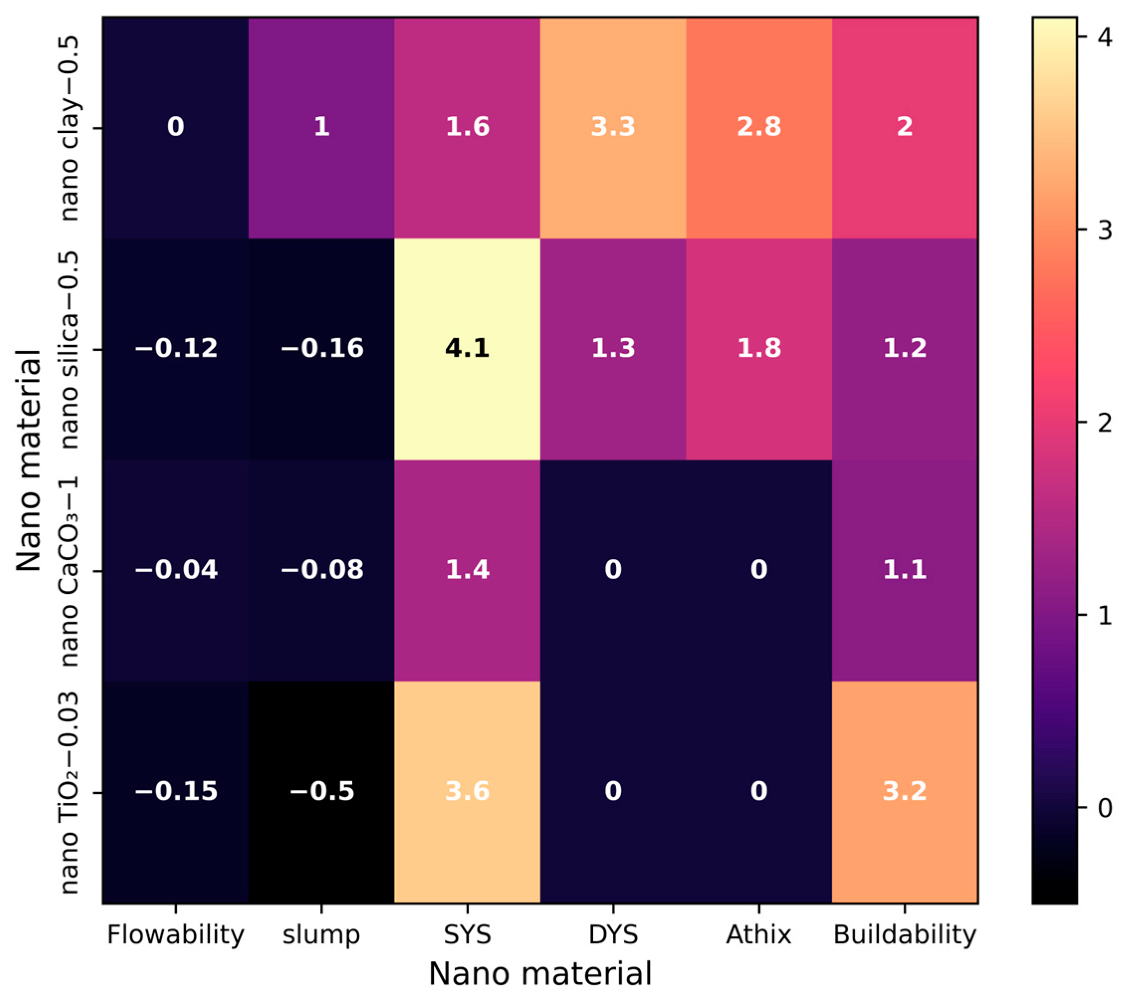- NC enhances green strength and early stiffness through its flocculation-promoting capacity, acting as a viscosity-modifying agent, while NS accelerates hydration kinetics and improves structural buildup and shape retention. An excessive dosage of NMs leads to agglomeration and pumpability issues, often resulting in unprintable mixes. Almost all NMs have a negative impact on the flowability of the blend due to their larger surface area.
