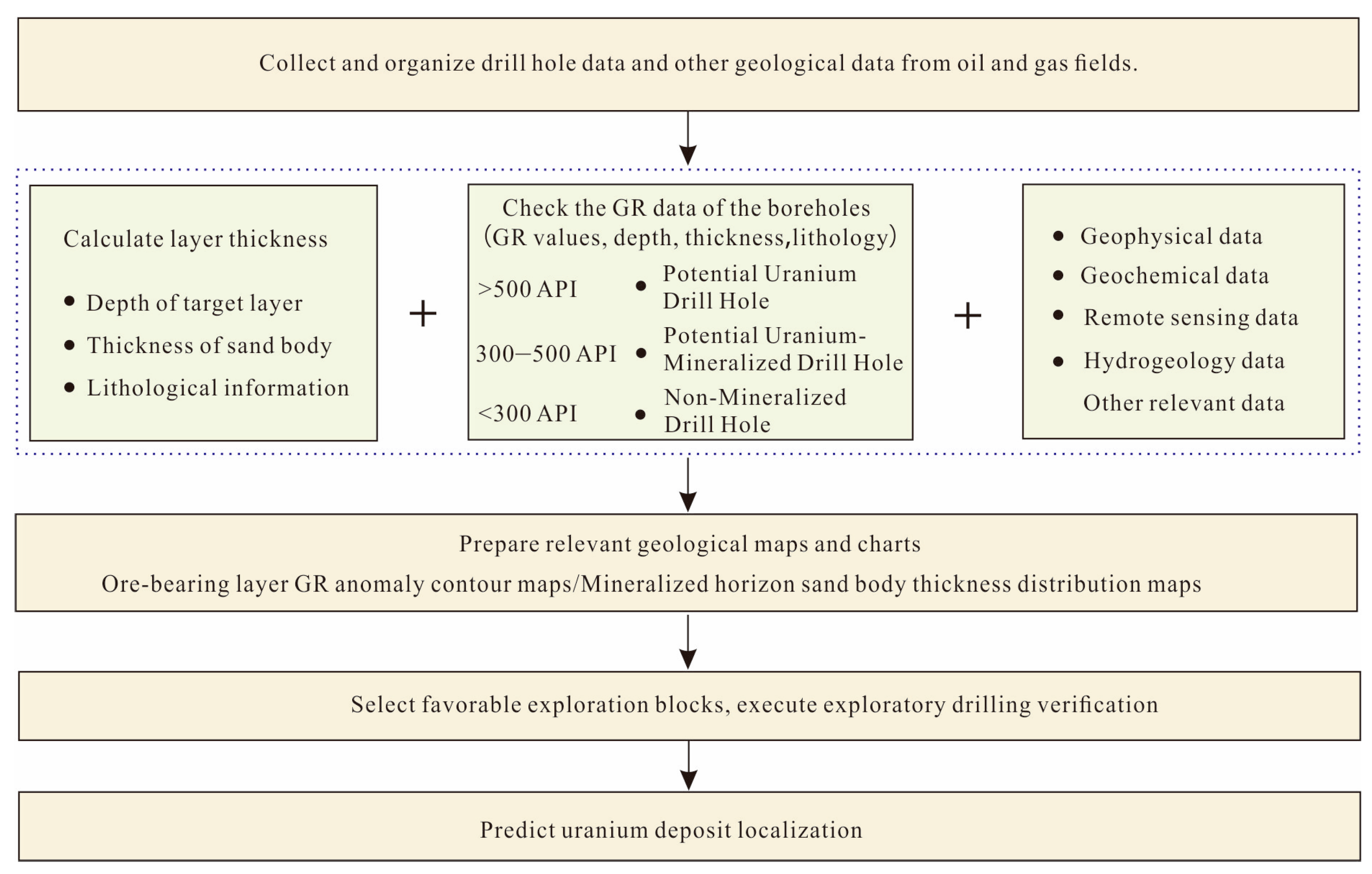 - This study proposes an integrated exploration methodology for discovering sandstone-type uranium deposits within hydrocarbon fields by leveraging existing petroleum infrastructure data. Our approach systematically reevaluates oilfield borehole records and seismic datasets to identify uranium anomalies through comprehensive gamma-ray log screening. This enables precise target delineation for confirmatory drilling, establishing a data-driven pathway for uranium discovery in mature petroleum provinces.