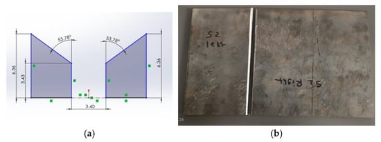 Joint geometry used for WAAM specimen fabrication: (a) offset V-groove design and (b) prepared A36 plates. This welded-joint configuration enabled stable PAUT scanning while maintaining WAAM process conditions.