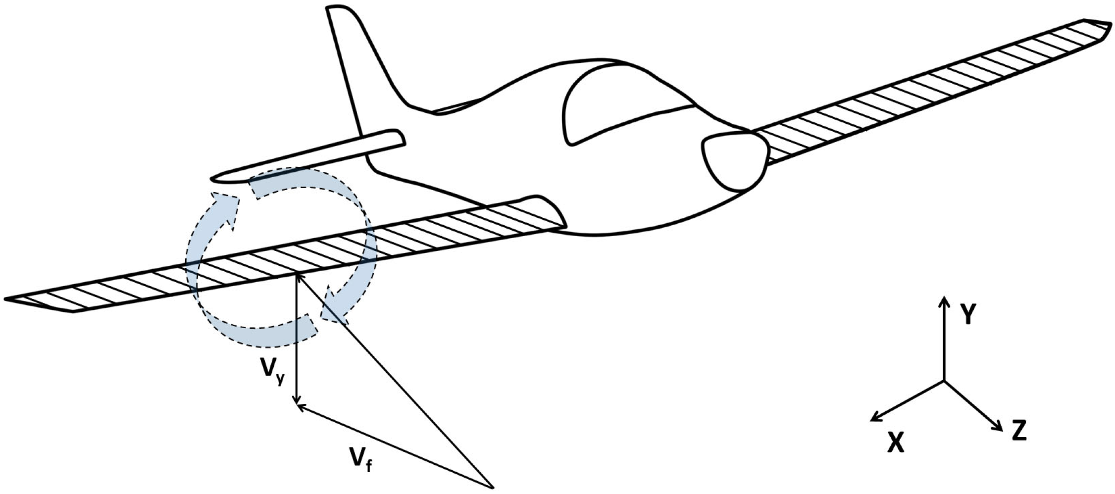 f is the span length of the training aircraft’s wing in the X direction, V