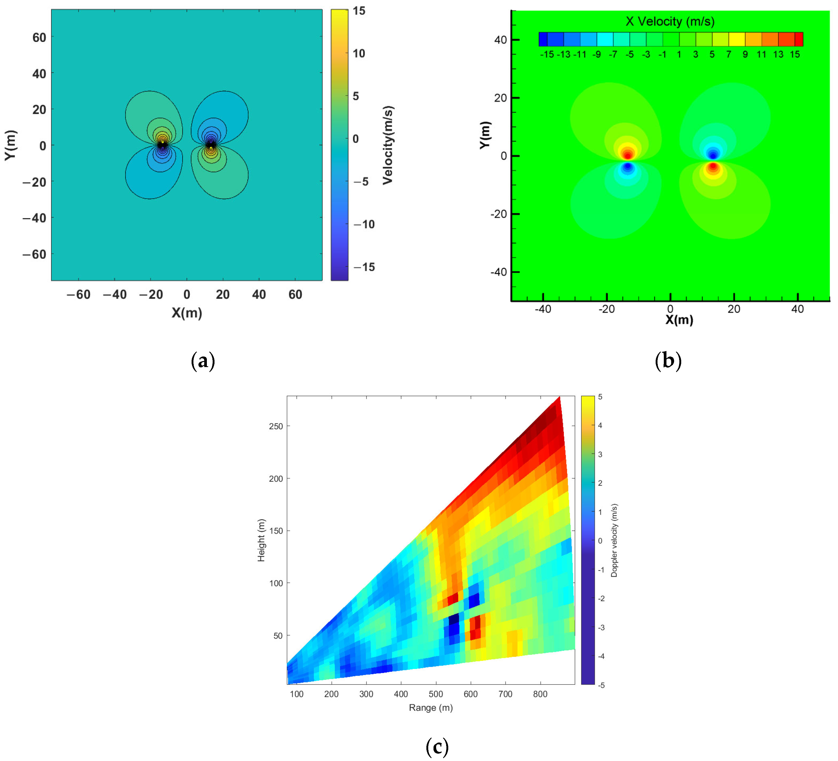 Figure 5. The comparison results indicated that the wake vortex velocity field from the numerical simulation and detection aligns well with the predicted wake vortex model, with similar structural ranges. The simulation parameters are presented in