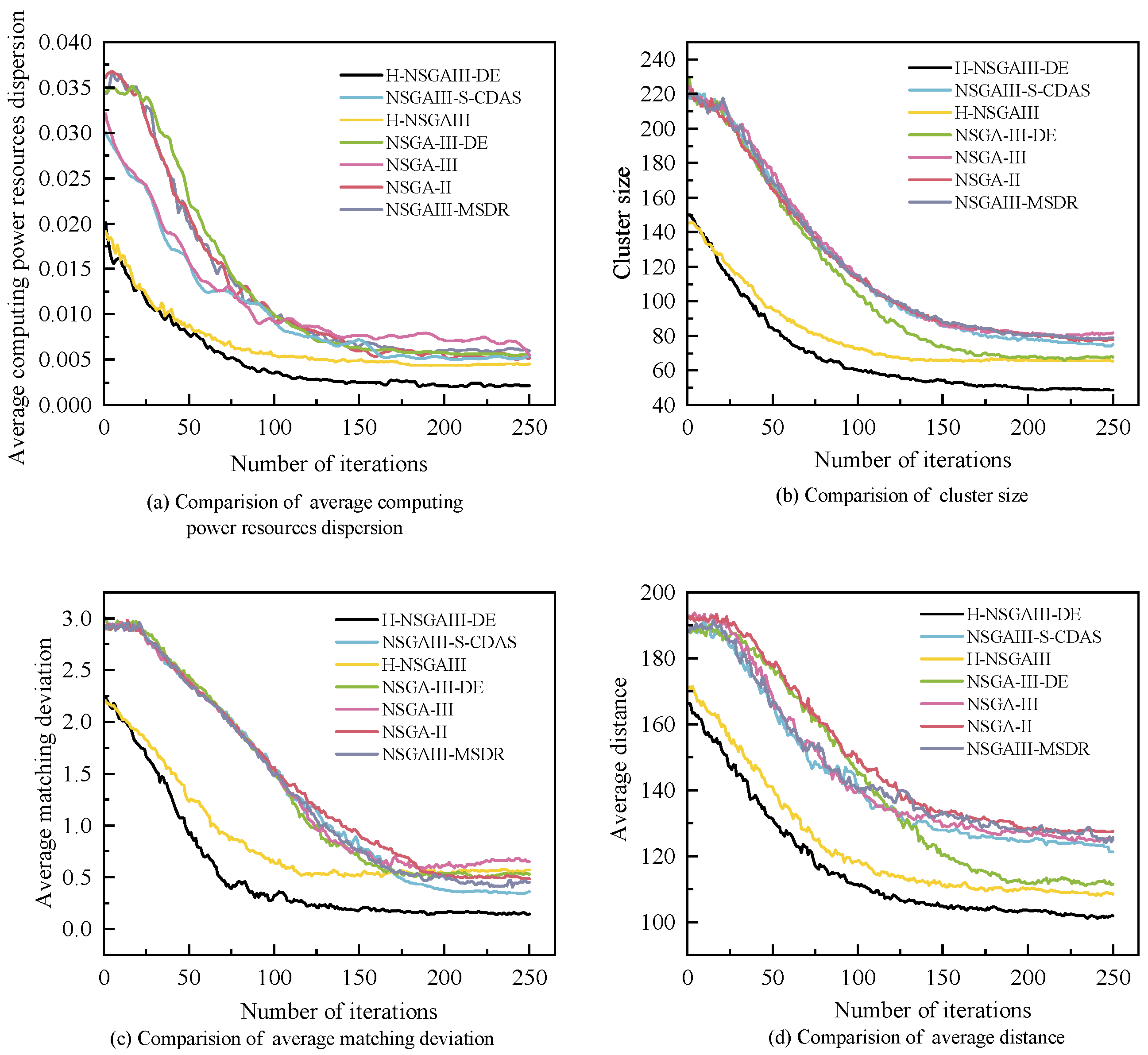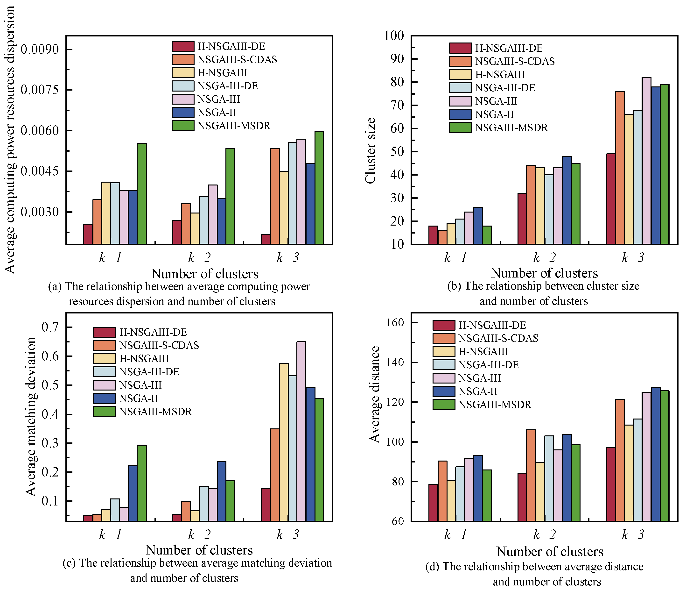 Finally, the effectiveness and advantages of the proposed algorithm are verified through comparative experiments.The proposed method demonstrates comprehensive performance improvements across all optimization objectives. Specifically, it achieves an 18.07% reduction in task–resource matching deviation (average matching deviation), a 7.82% decrease in computing resources heterogeneity (average computing power resources dispersion) within clusters, a 15.25% reduction in cluster size, and a 10% decrease in server–terminals communication overhead (average distance). These results effectively validate that the proposed method constructs terminal clusters with significantly optimized configurations for task execution.