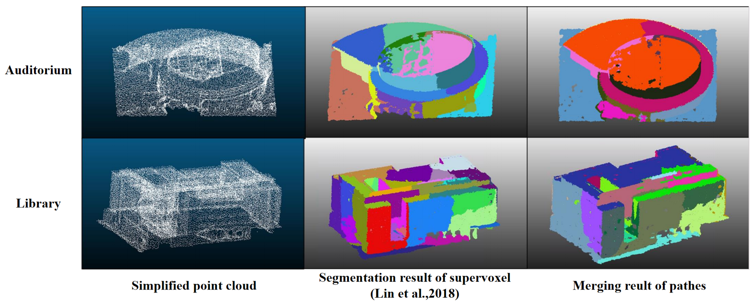 - Lin, Y.; Wang, C.; Zhai, D.; Li, W.; Li, J. Toward Better Boundary Preserved Supervoxel Segmentation for 3D Point Clouds. ISPRS J. Photogramm. Remote Sens. 2018, 143, 39–47. [Google Scholar] [CrossRef]