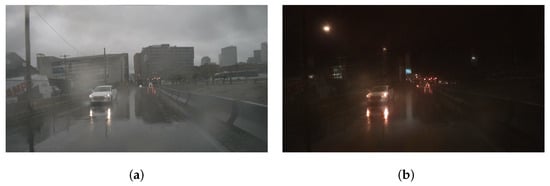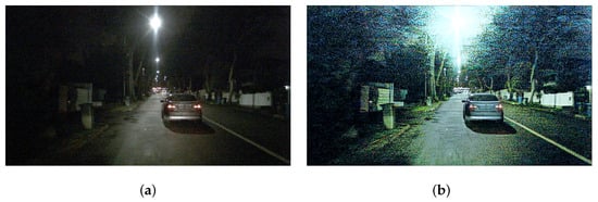 Example of unpaired day-to-night style transfer using CycleGAN. (a) Original Image; (b) Image after Style Transfer.