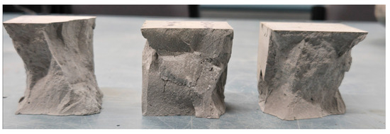 The results provided essential input for understanding the grout’s strength progression over time, which was further incorporated into the numerical simulations to ensure realistic modelling of grout behaviour under axial loading. The post-failure appearance of a grout specimen is shown in Figure 15.