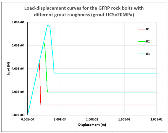 - In the present study, roughness effects were represented indirectly through equivalent cohesion and stiffness values back-calculated from pull-out tests. This approach captures the combined influence of surface texture, adhesion, and micro-interlocking without requiring direct measurement. Future work should include the direct characterisation of the bolt–grout and grout–rock interfaces. Measured roughness indices could then be incorporated into numerical models to link surface morphology with bond strength.