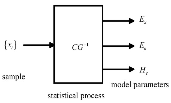 The inverse cloud generator represents the numerical sample space by three features of the cloud model. Therefore, for a given set of samples , the inverse cloud generator is the process of obtaining the parameters of the sample set , which is calculated as follows: