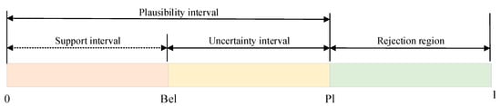 The function of trust Bel(A) reflects the level of support for the event A, and Pl(A), which measures the level of acceptability for the event A, represents the level of uncertainty. Figure 4 depicts their relationship with one another.