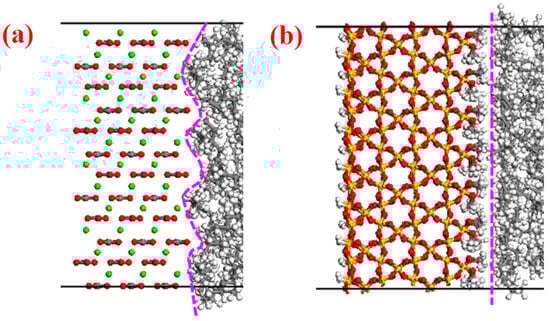 - Emami, F.S.; Puddu, V.; Berry, R.J.; Varshney, V.; Patwardhan, S.V.; Perry, C.C.; Heinz, H. Force field and a surface model database for silica to simulate interfacial properties in atomic resolution. Chem. Mater. 2014, 26, 2647–2658. [Google Scholar] [CrossRef]