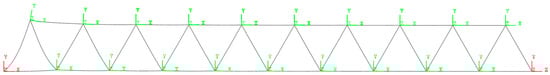 The truss bar subsystem, based on the Euler–Bernoulli beam model, is analogous to the configuration used in Model 1.1 and Model 1.2 (see Figure 3), and follows the same modeling principles. All the truss bars have an identical structural composition, and only axial force is taken into account.