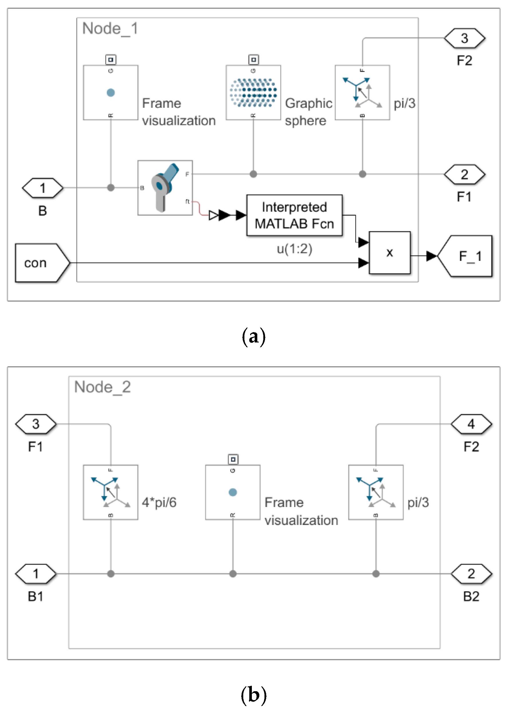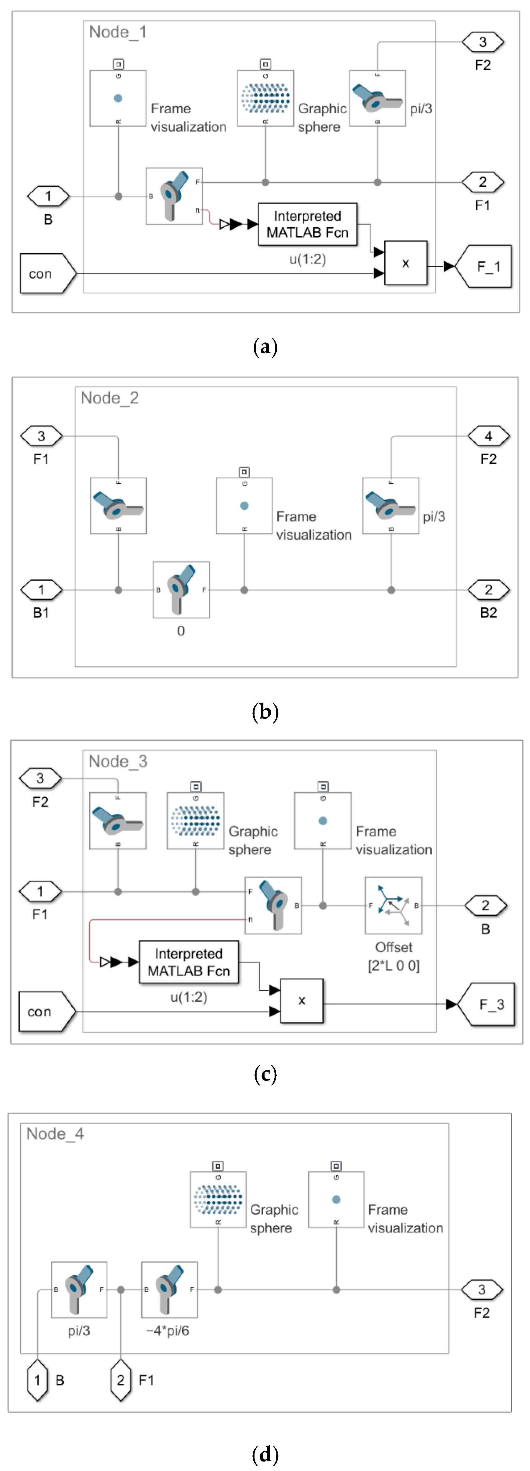 - Frankovský, P.; Hroncová, D.; Delyová, I.; Virgala, I. Modeling of dynamic systems in simulation environment MATLAB/Simulink–SimMechanics. Am. J. Mech. Eng. 2013, 1, 282–288. [Google Scholar]