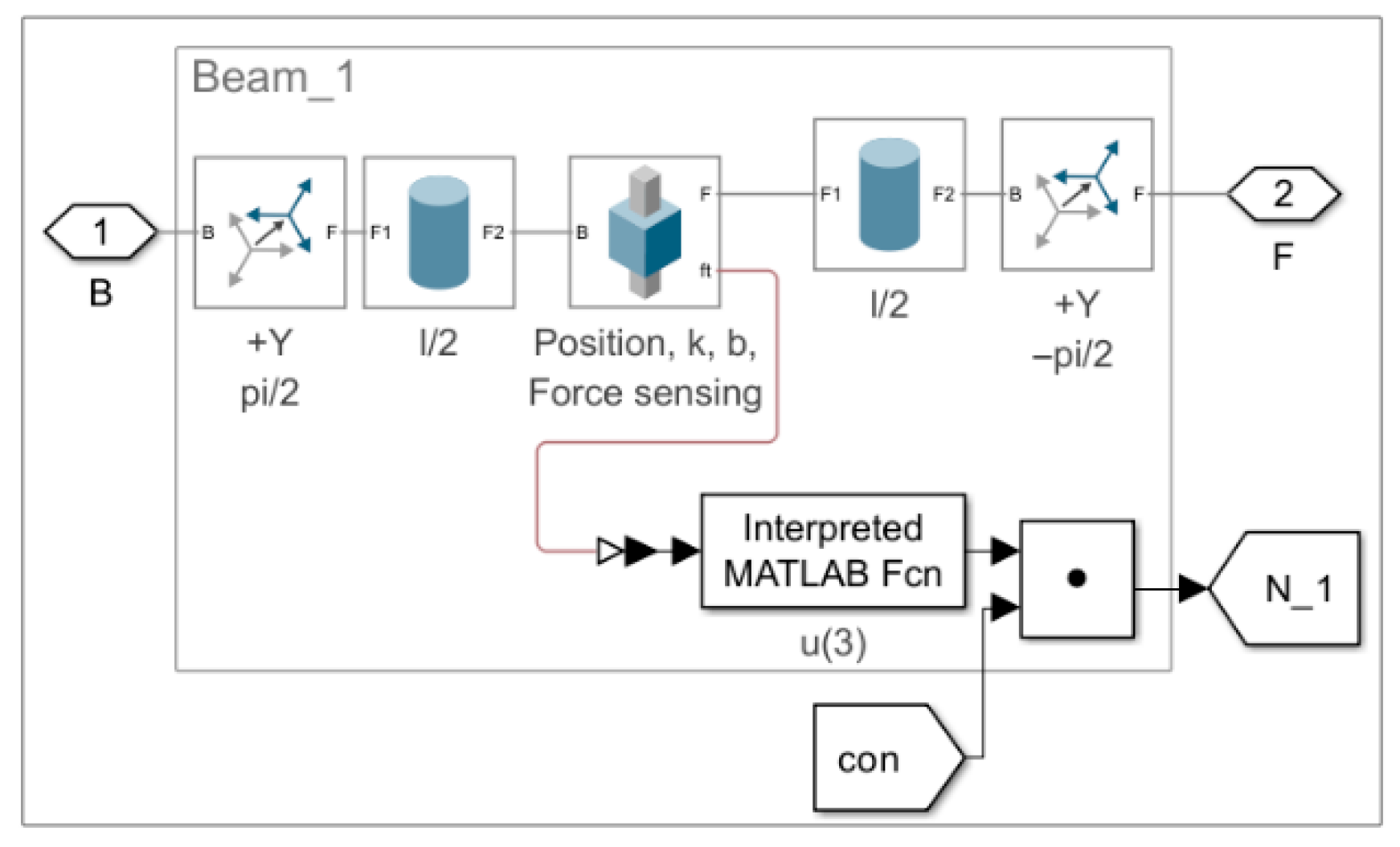- Miller, S.; Soares, T.; Weddingen, Y.V.; Wendlandt, J. Modeling flexible bodies with simscape multibody software. In An Overview of Two Methods for Capturing the Effects of Small Elastic Deformations; MathWorks: Natick, MA, USA, 2017. [Google Scholar]