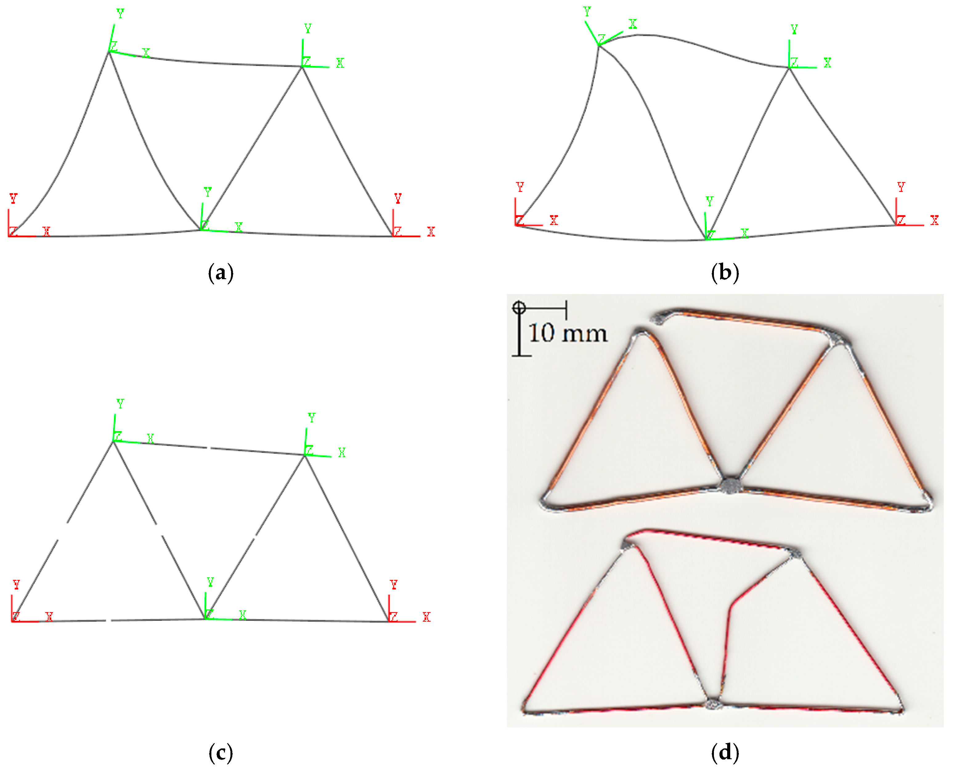 - Model 1.2 serves as an experimental variant. It also employs Euler–Bernoulli beams, but it uses solid joints. This configuration does not conform to the assumptions of the theoretical model, as the nodes do not incorporate movable joints.