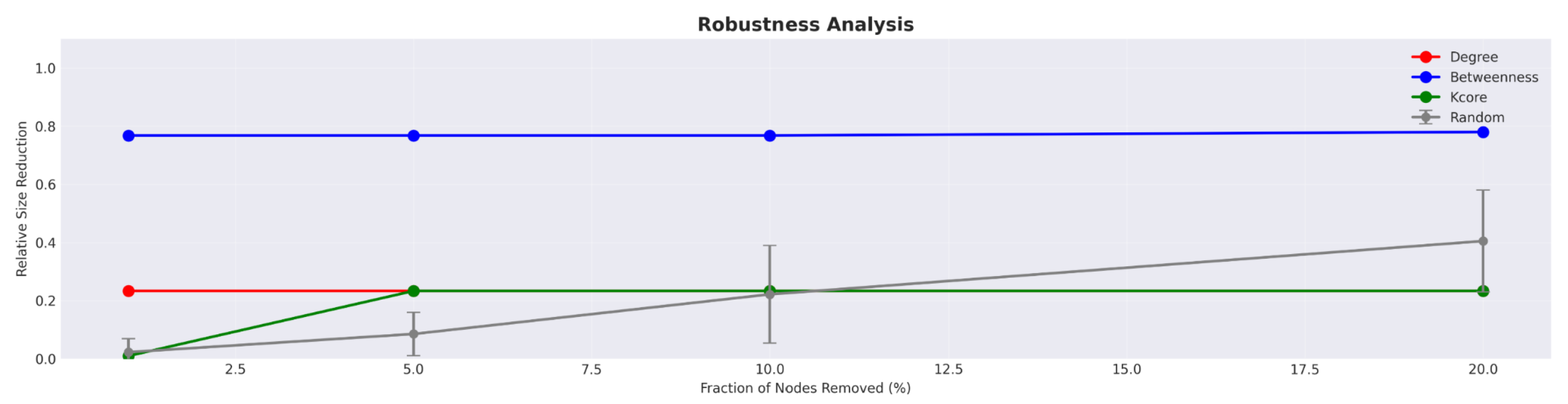 - Verification loop. Track post-patch LCC shrinkage and global efficiency drop on the reconnected graph as success metrics aligned to the sensitivity curves; reassess rich-club/k-core membership after each wave.
