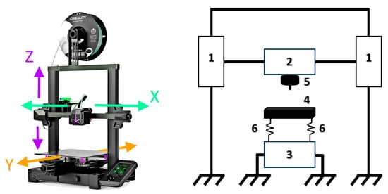 2.2. Analysis of the Movement of 3D Printer Components Along the X, Y, and Z Axes and Their Influence on Vibration Generation During Printing