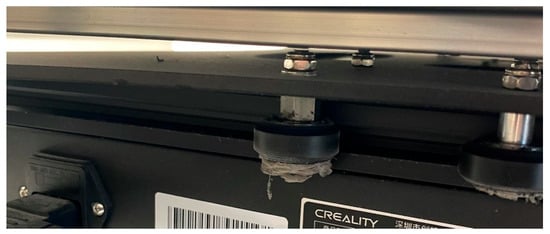 - Dust, dirt, or debris accumulation on wheels or bearings can cause uneven platform movement, impairing print accuracy (Figure 4). Such contamination may result in irregular bed movement, which leads to improper layer placement, deformation, and poor output quality [18].