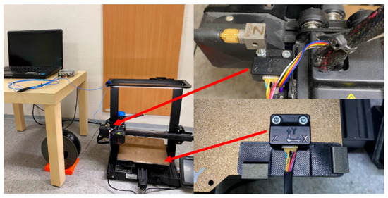 When designing the mounting solution for the ADXL345 vibration sensor on the printer’s print bed, several technical and practical aspects had to be considered. The sensor needed to be firmly and reliably attached directly to the moving bed to accurately capture real vibrations during Y-axis movement. The design accounted for thermal insulation from the heated surface, minimized the influence of additional weight on printing dynamics, ensured easy cable routing without restricting movement, and allowed for simple sensor installation and removal. The sensor was attached to the model using screws. Proper placement and securing of sensors are essential not only for their functionality but also for minimizing the impact of vibrations and collisions that may affect the experimental results. The key objective is to achieve reliable data comparison and verification of measurement accuracy, thereby contributing to the credibility and reproducibility of the results.