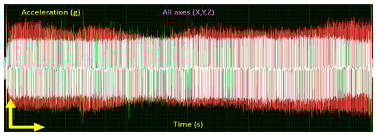 During the operation of the Creality Ender 3 V2 3D printer (Shenzhen Creality 3D Technology Co., Ltd., Shenzhen, China), multiple components move along different axes, and each of these movements can generate vibrations and affect the quality of the print. Analyzing motion in the X, Y, and Z axes is therefore essential for identifying instability sources and proposing effective measures for their elimination.