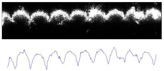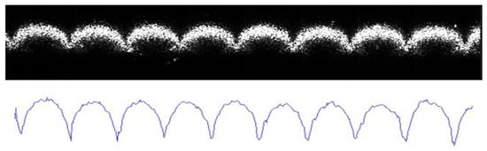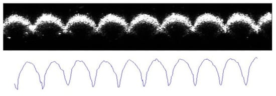 The middle section of sample P5 shows consistent behavior across all modes. The lowest Ra value was measured without compensation (18.717 µm, as illustrated in Figure 27), suggesting that in this particular case, the mechanical system may have been sufficiently stable even without assistance. Printhead motion compensation slightly increased the surface roughness (20.521 µm, as illustrated in Figure 28), while bed motion compensation showed similarly high values (up to 24.871 µm). This section suggests that active correction may sometimes lead to undesired oscillations if not optimally configured.