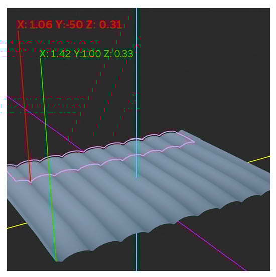 When analyzing the 3D surface model of the sample obtained from the profilometer, it is important to identify the minimum and maximum coordinate values in the X, Y, and Z axes. The X and Y coordinates represent the distribution of measured points in the sample’s plane, with the range of these values defining the size of the analyzed area. The Z axis displays the vertical deviations of the surface, representing the peaks and troughs of the sample surface, as presented in Figure 33.