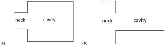 Diagram of a Helmholtz resonator consisting of a neck and a cavity—(a) typical geometry; (b) inverse geometry.