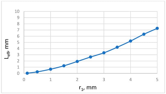 Unlike the results presented in Figure 3, for the tested composite for individual variants of d1, corrections ΔL were assumed. Then, the dependence of Leff on d1 was illustrated, as shown in Figure 12.