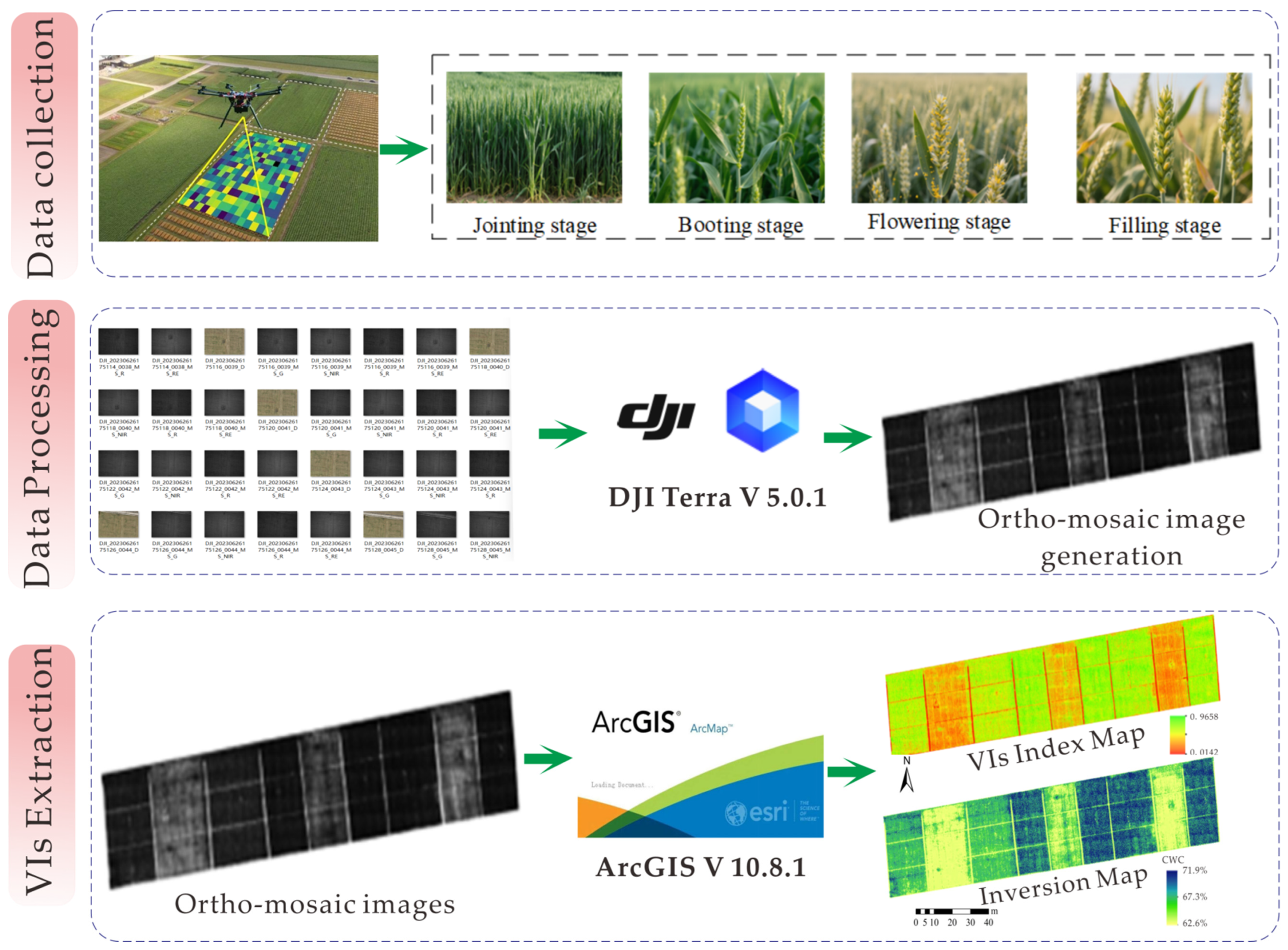 - Zhang, Z.; Dou, G.; Zhao, X.; Gao, Y.; Liu, S.; Qin, A. Inversion of Crop Water Content Using Multispectral Data and Machine Learning Algorithms in the North China Plain. Agronomy 2024, 14, 2361. [Google Scholar] [CrossRef]