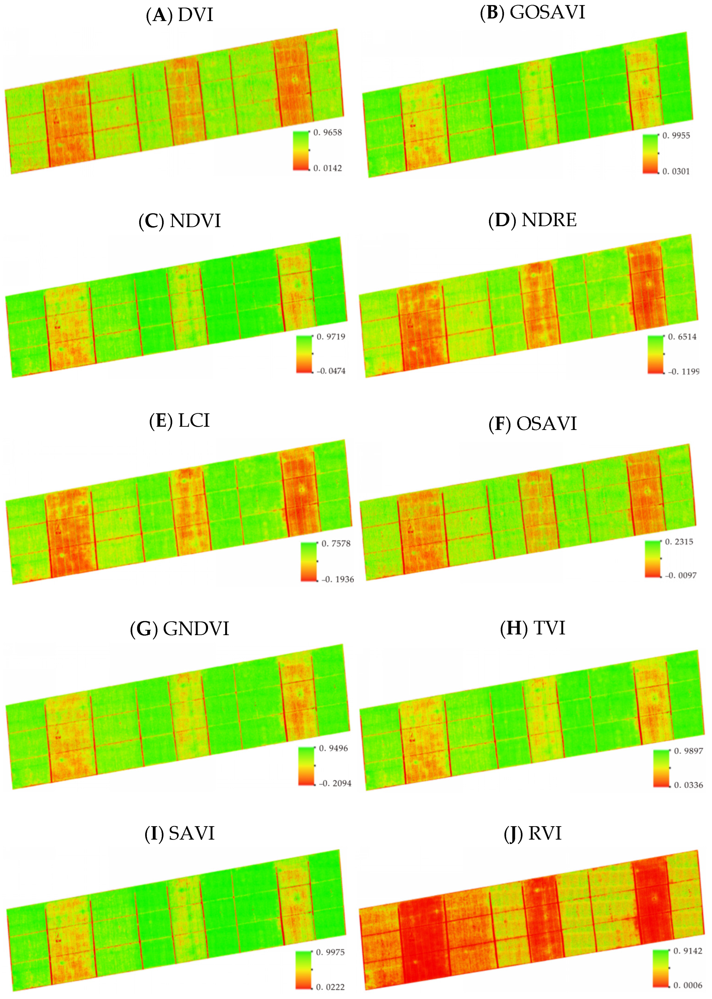 3.3. Comparison of Vegetation Indices at Flowering Stage