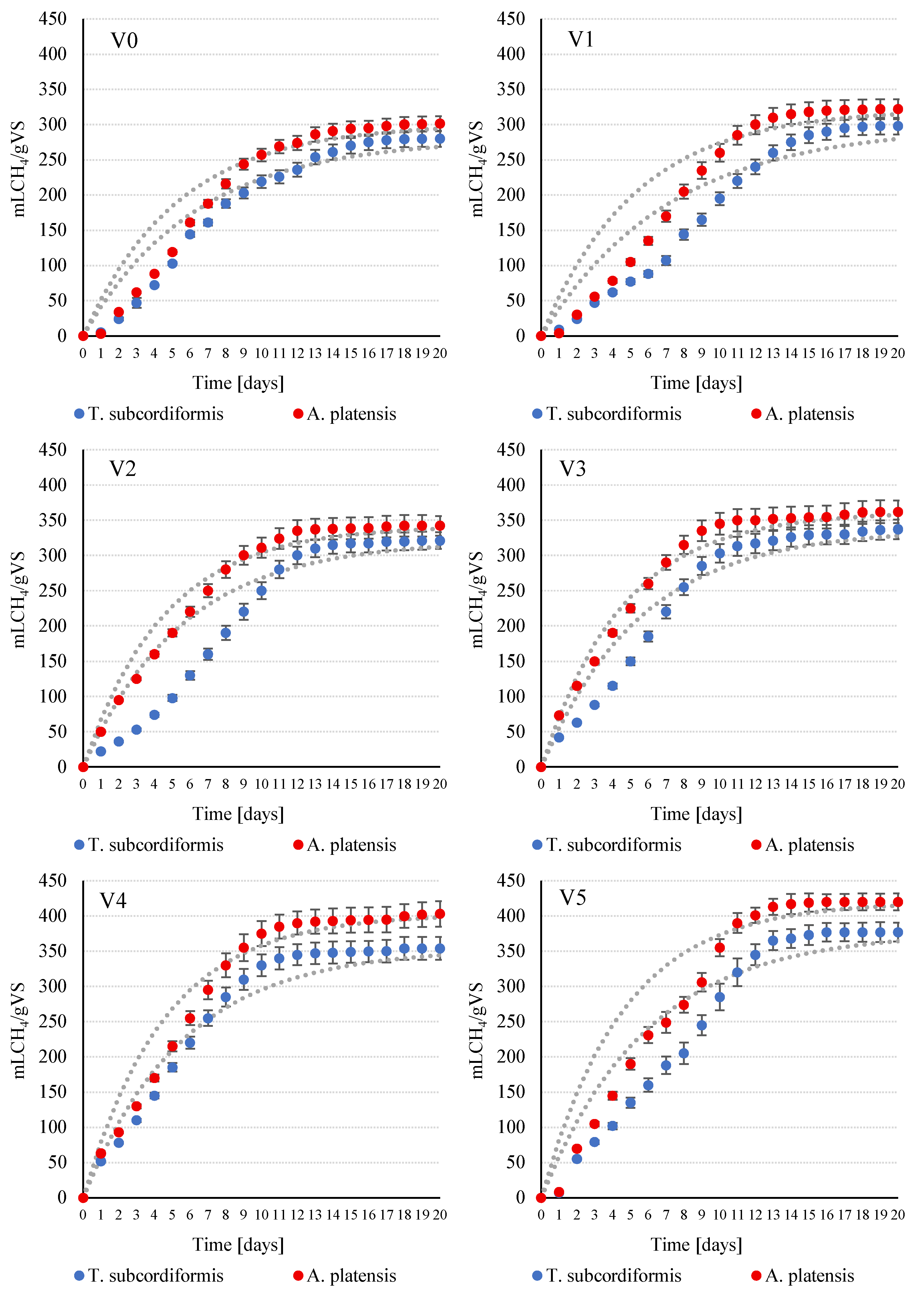- VS_biomass—VS of the T. subcordiformis/L. platensis biomass used (kgVS);