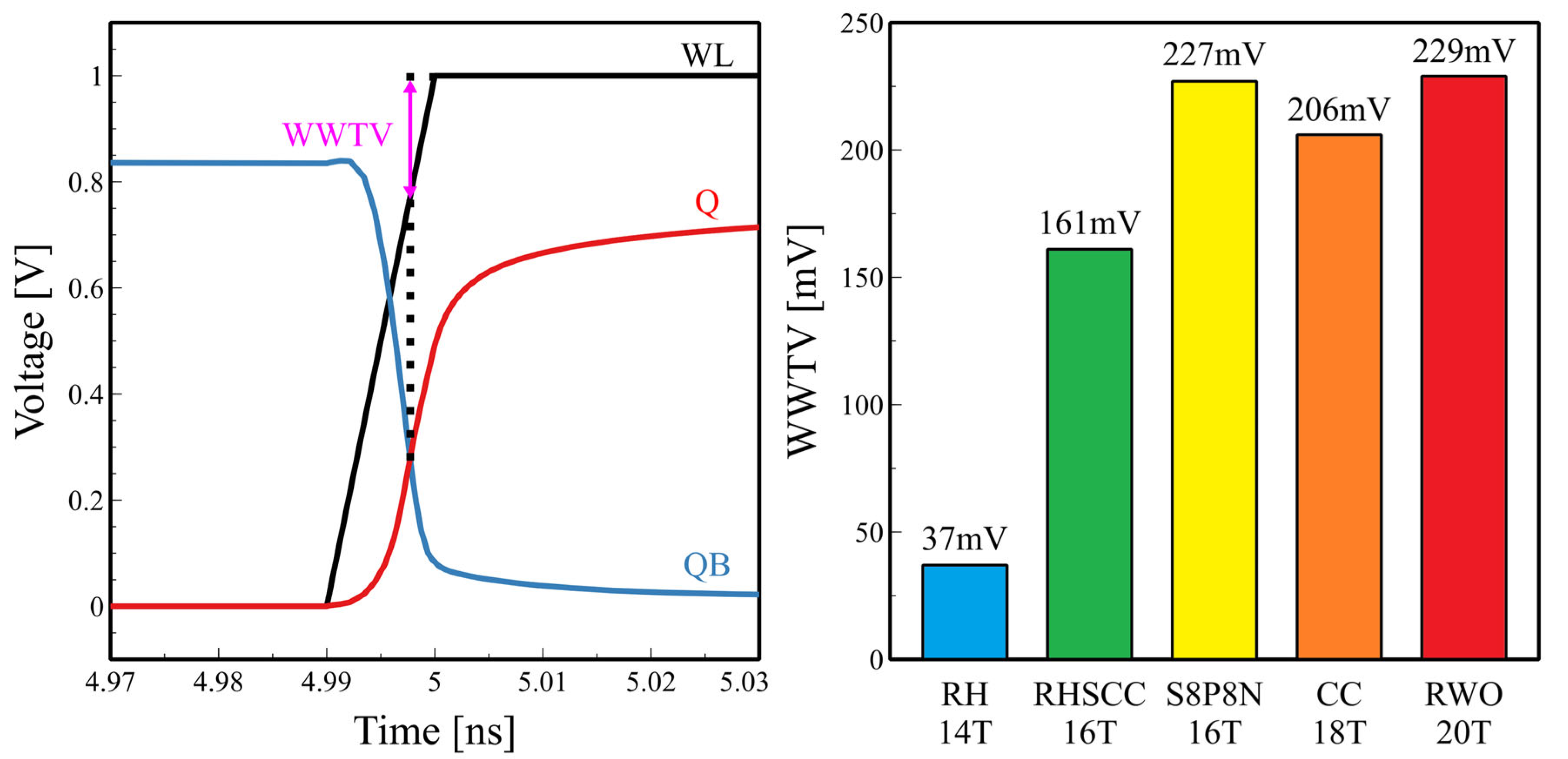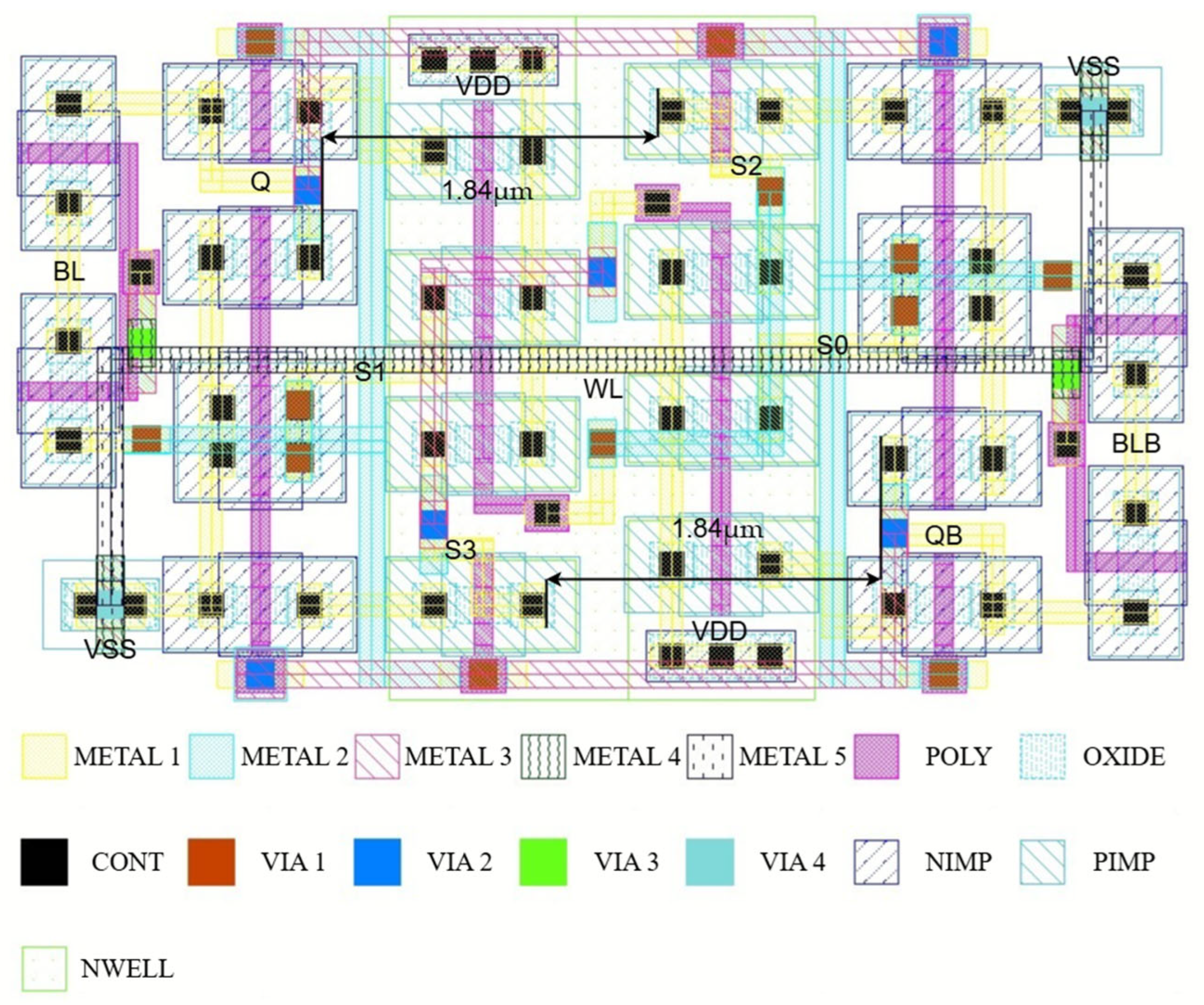 - Cai, S.; Wen, Y.; Ouyang, J.; Wang, W.; Yu, F.; Li, B. A highly reliable and low-power cross-coupled 18T SRAM cell. Microelectron. J. 2023, 134, 105729. [Google Scholar] [CrossRef]