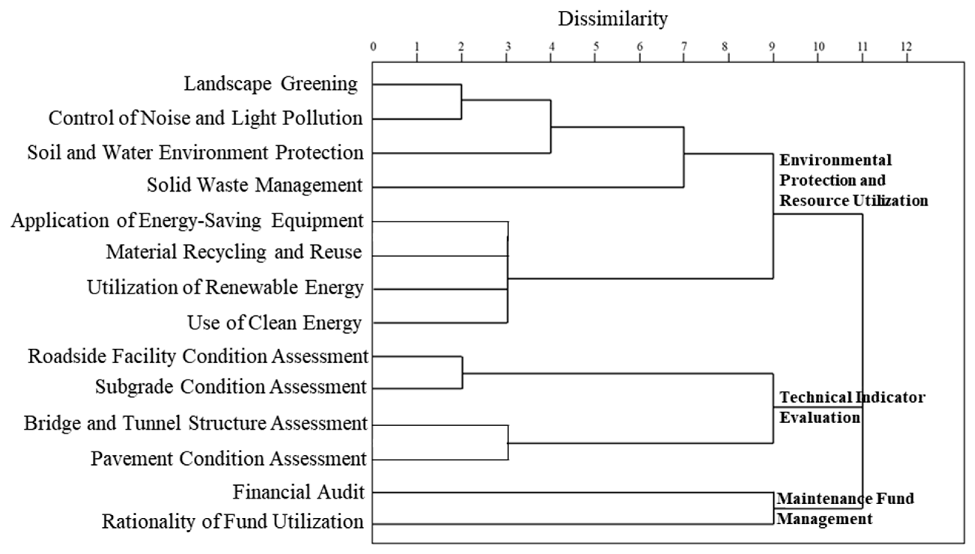Appendix A.2. Determination of Indicator Weights for the Post-Evaluation of Highway Preventive Maintenance Technology Based on the AHP