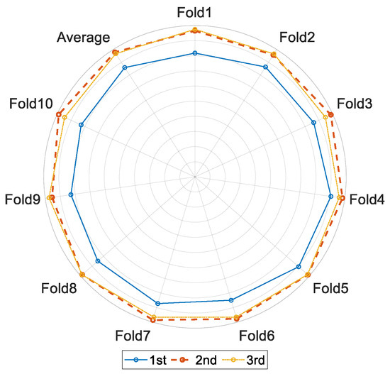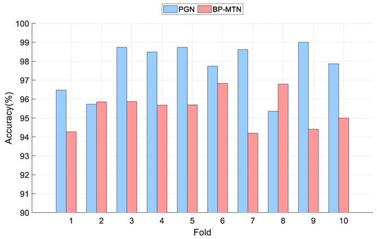 To verify the rationality of the gating mechanism, ablation experiments were conducted. Figure 7 shows the comparison of the 10-fold cross-validation accuracy for the PGN and BP-MTN models.