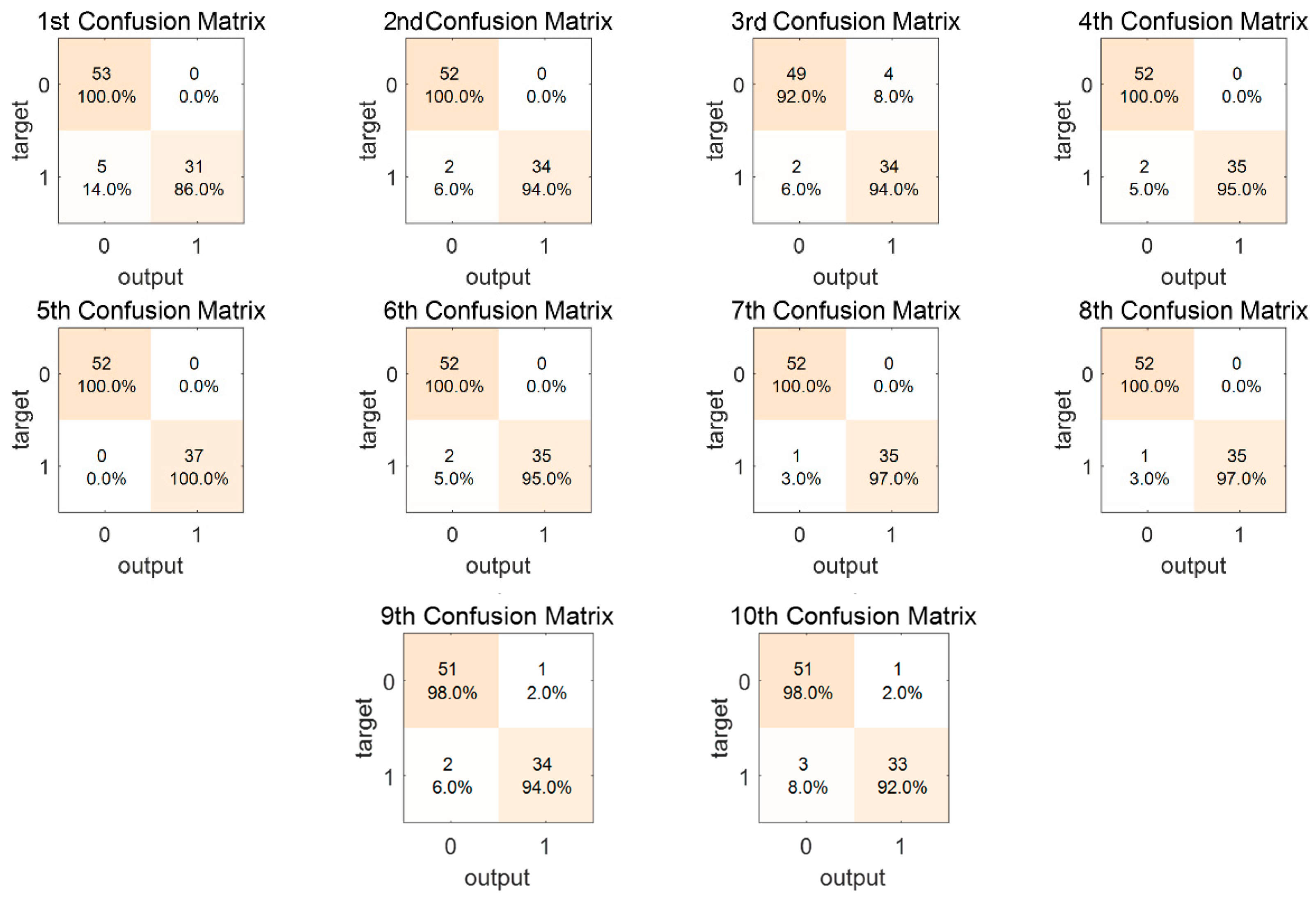 Furthermore, the 10 confusion matrices are shown in
