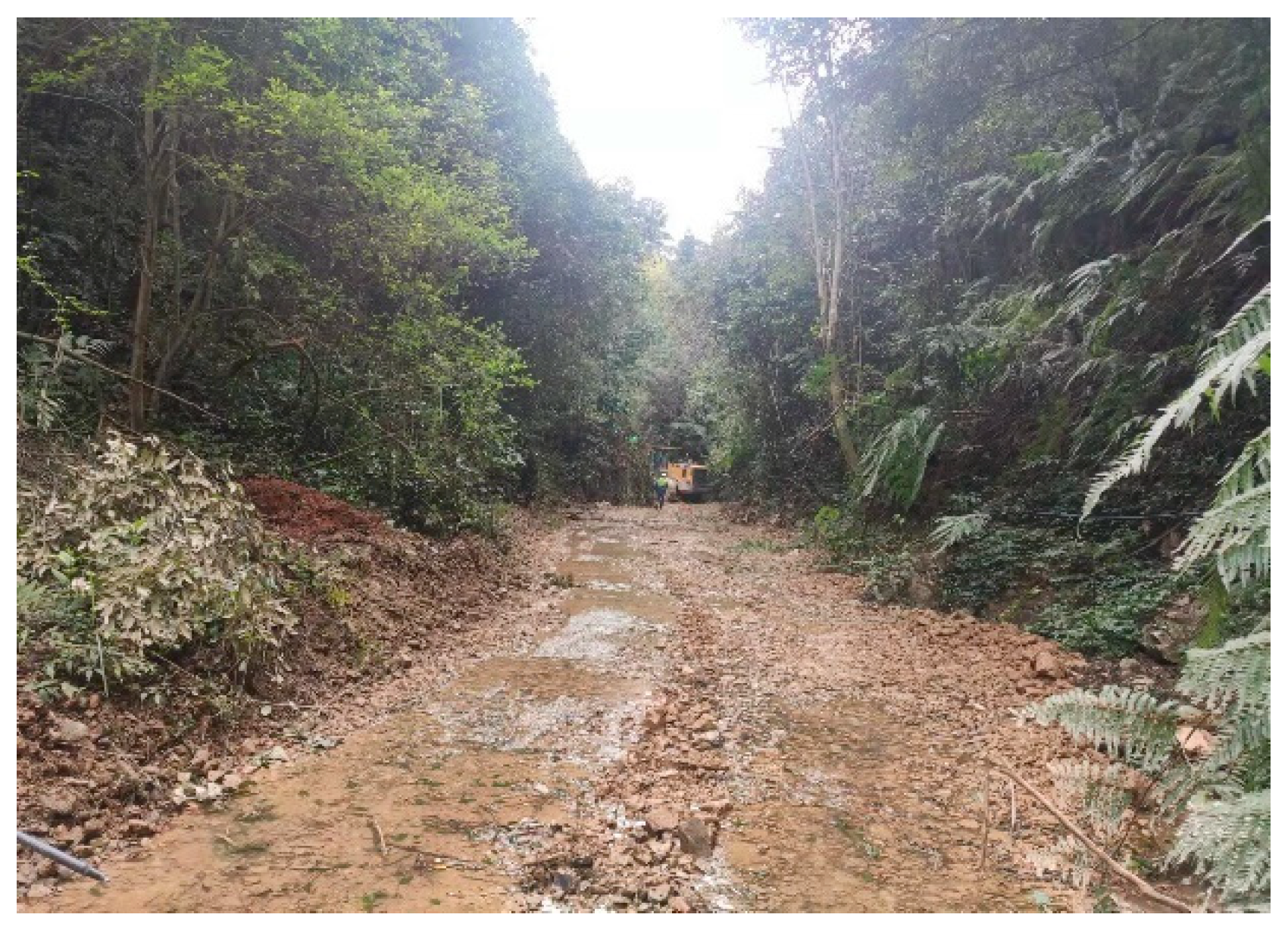 - It reveals the “water content threshold effect” and softening law of tuff mechanical properties. Through systematic unsaturated mechanical tests, the phased attenuation characteristics of the mechanical parameters of the local blastotuff with water content were quantified. The critical water content for significant strength deterioration was determined to be 2.5%, and the saturated softening coefficient was measured as 0.59. This law provides a key theoretical and data basis for the stability evaluation and early warning of tunnel surrounding rock during the rainy season.