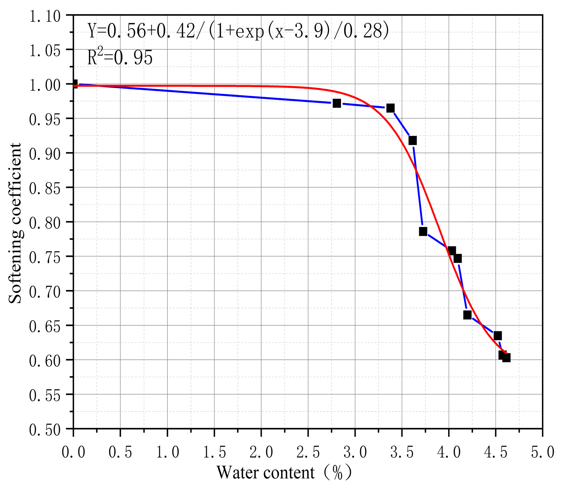 | Softening Coefficient | Evaluation of Water Influence Degree on Rock |
