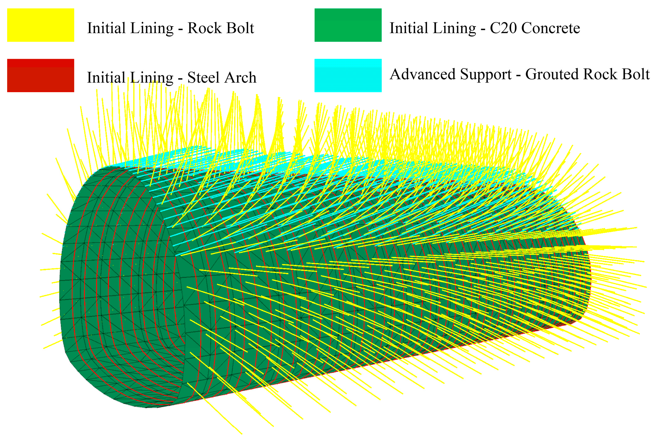 - Mao, W.; Ren, Z.L.; Liu, X.J.; Muhemaier, R.; Li, Y.J.; Jiang, C.T. Research on the Stability of Lining Structures Under Different Fault Moments Based on FDM-DEM. Build 2024, 14, 16. [Google Scholar] [CrossRef]