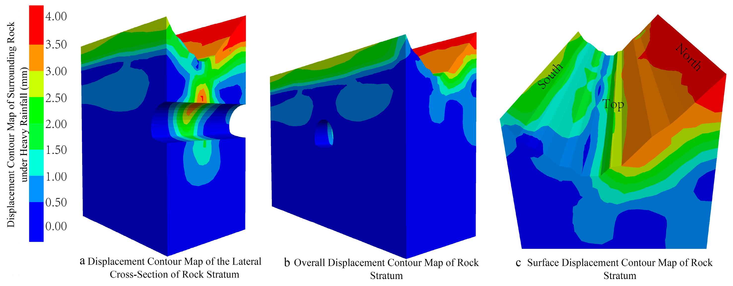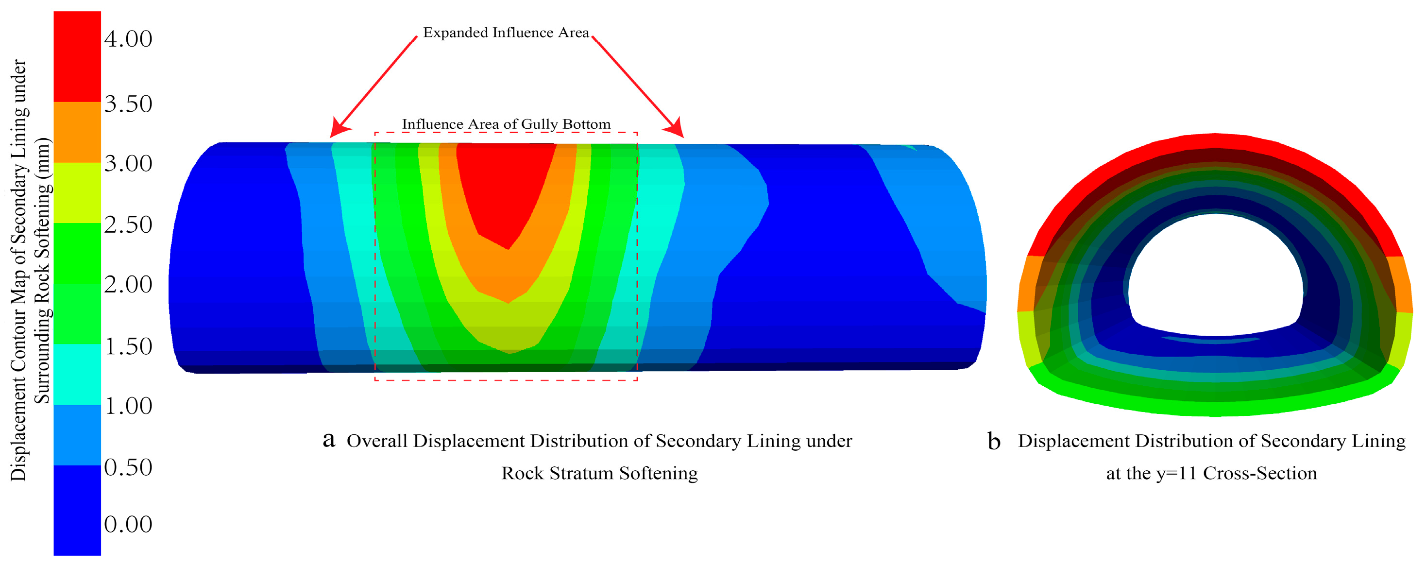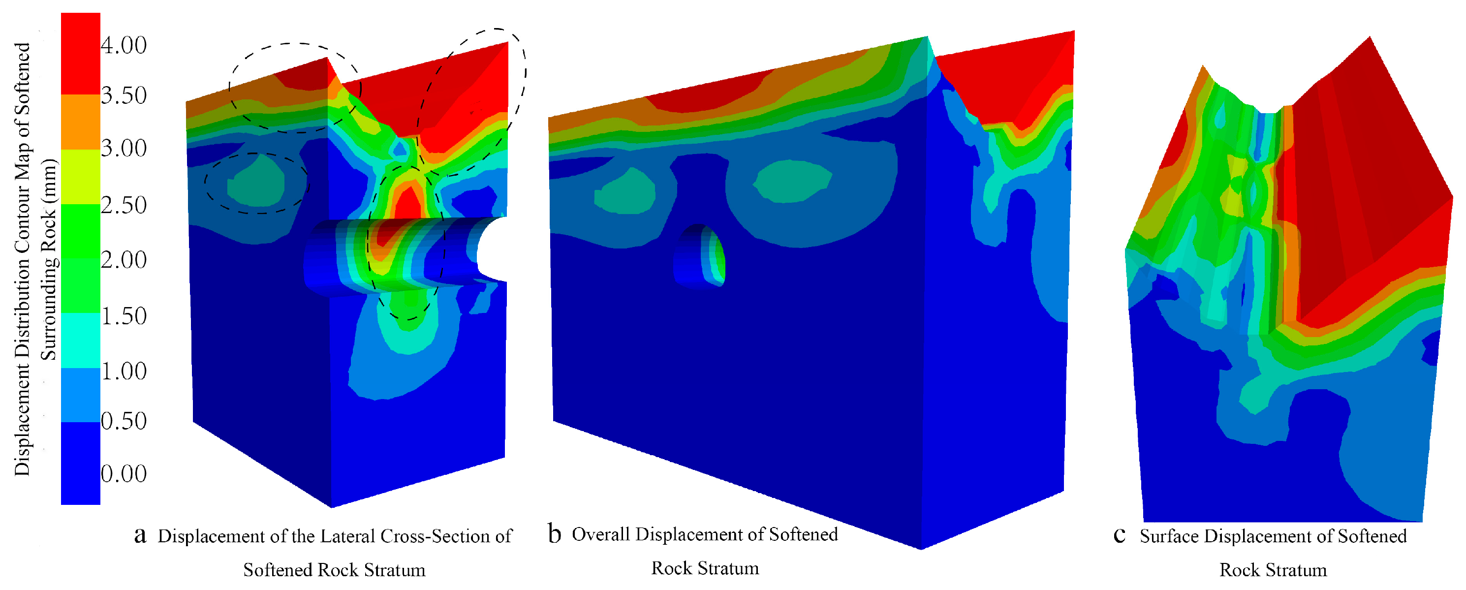 5.4. Influence of Rock Stratum Softening on Tunnel Stability