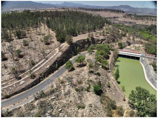 The area is part of the Trans-Mexican Volcanic Belt, a physiographic province characterized by predominantly mountainous terrain with a wide variety of landforms, including mountain ranges, volcanic cones, and ash deposits [20,21]. As a result, the prevailing lithology at the site corresponds to ignimbrite, a volcanic igneous rock composed of a glassy matrix with embedded pumice fragments, exhibiting a well-defined fracture pattern.