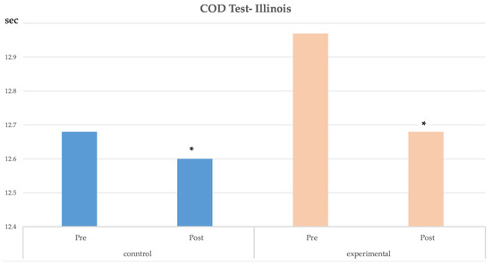 Pre- versus post-intervention results in the Illinois Agility Test (