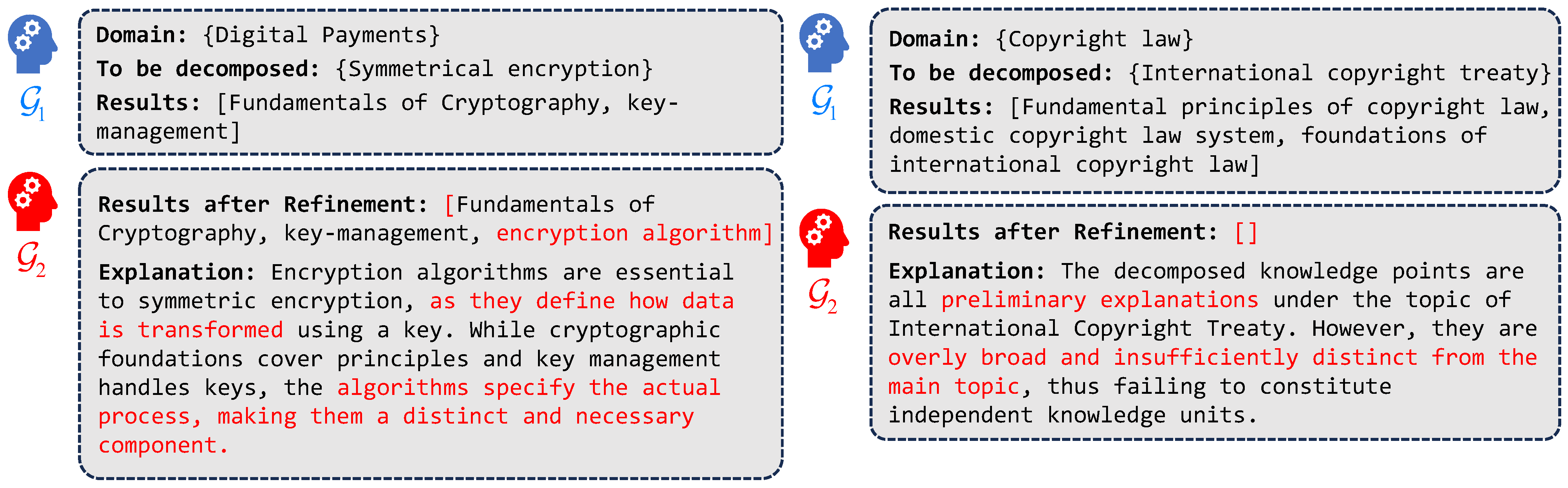 , which alternately carry out knowledge decomposition and critique-driven refinement. The prompts used during the knowledge tree construction process are provided in
