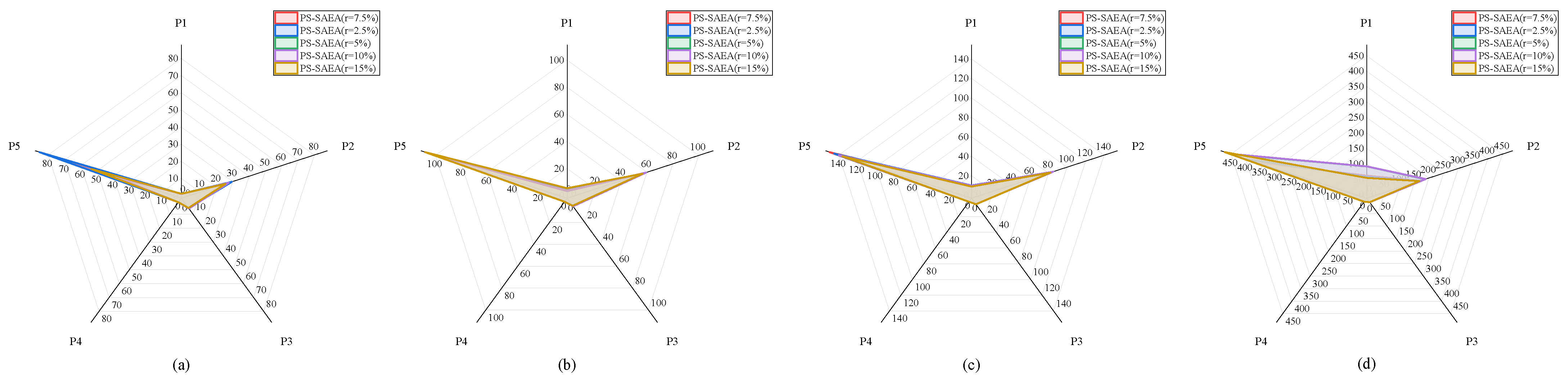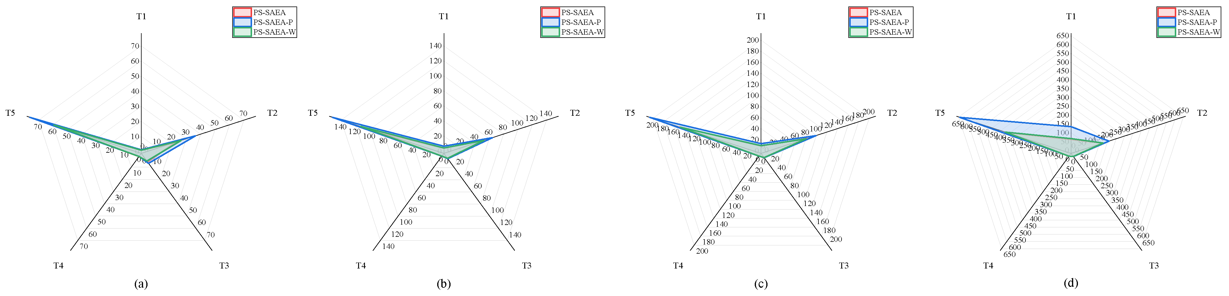 Table 4 presents the performance comparisons among the original PS-SAEA and its two variants, PS-SAEA-P and PS-SAEA-W. To provide a better visualization,