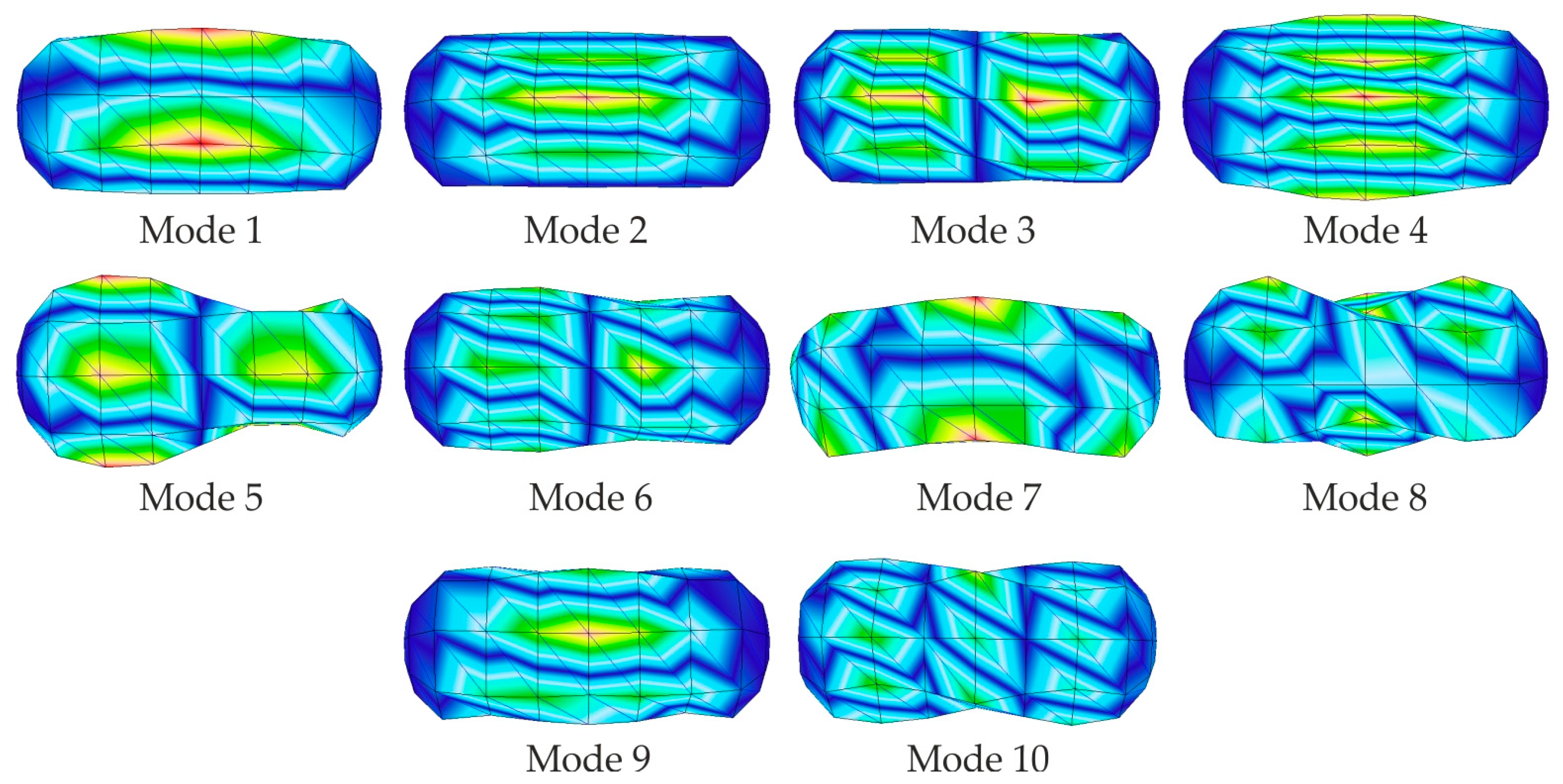 | Mode 1 | Mode 2 | Mode 3 | Mode 4 | Mode 5 | Mode 6 | Mode 7 | Mode 8 | Mode 9 | Mode 10 |