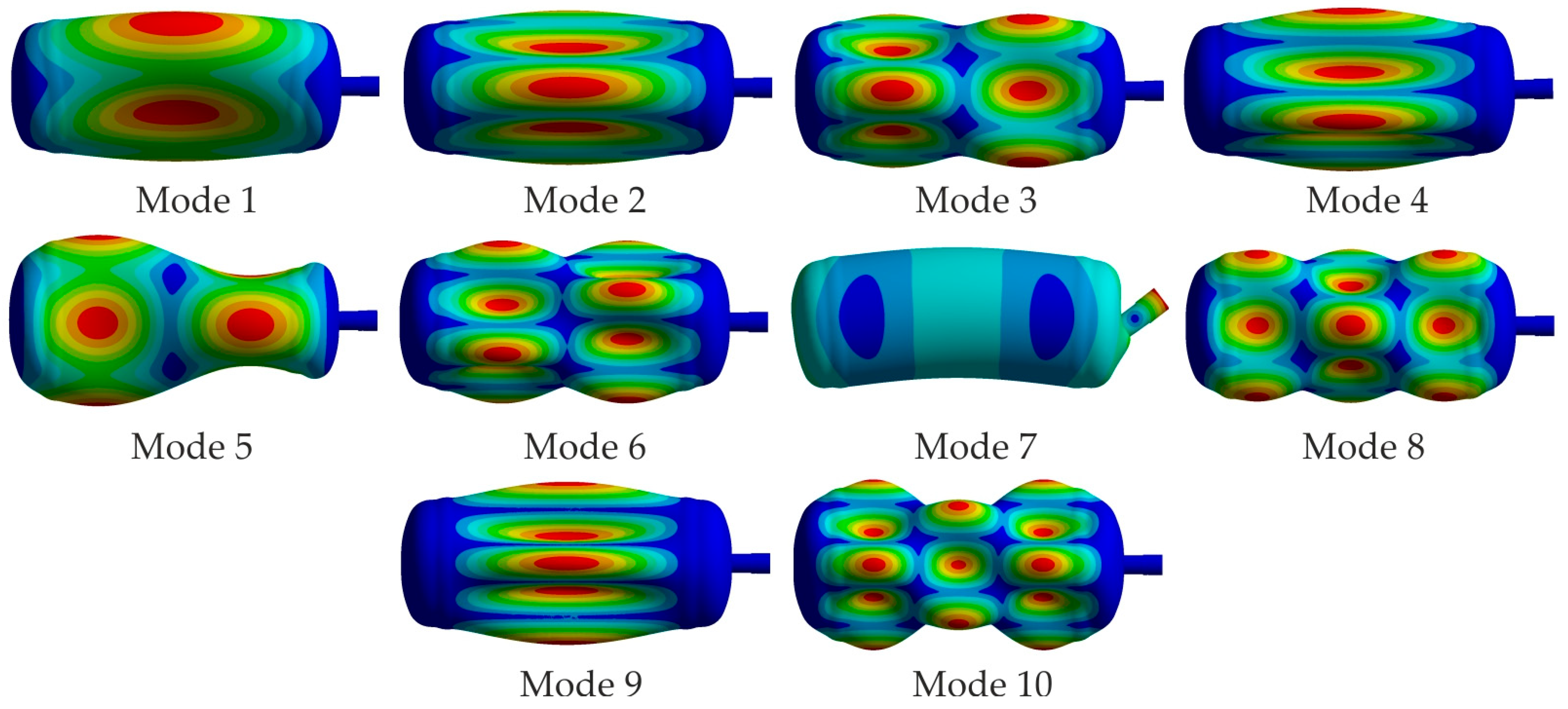 3.2. Numerical Modal Analysis of the Pressure Vessel