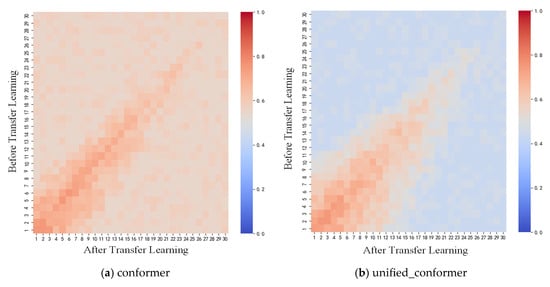 (2) In the transfer learning phase, this study introduces a layer-wise adaptive strategy that preserves the low-level general features of the pretrained model while dynamically adjusting the learning rates of the higher layers according to loss values and source–target language similarity. Fine-tuning is applied primarily to the higher layers. The effectiveness and rationality of this strategy are further demonstrated through CKA similarity matrix analysis, which reveals distinct patterns of hierarchical feature adaptation.