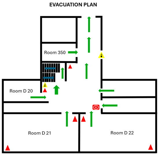 - ISO 23601:2020(en); Safety Identification—Escape and Evacuation Plan Signs. Available online: https://www.iso.org/obp/ui/#iso:std:iso:23601:ed-2:v1:en (accessed on 15 June 2025).