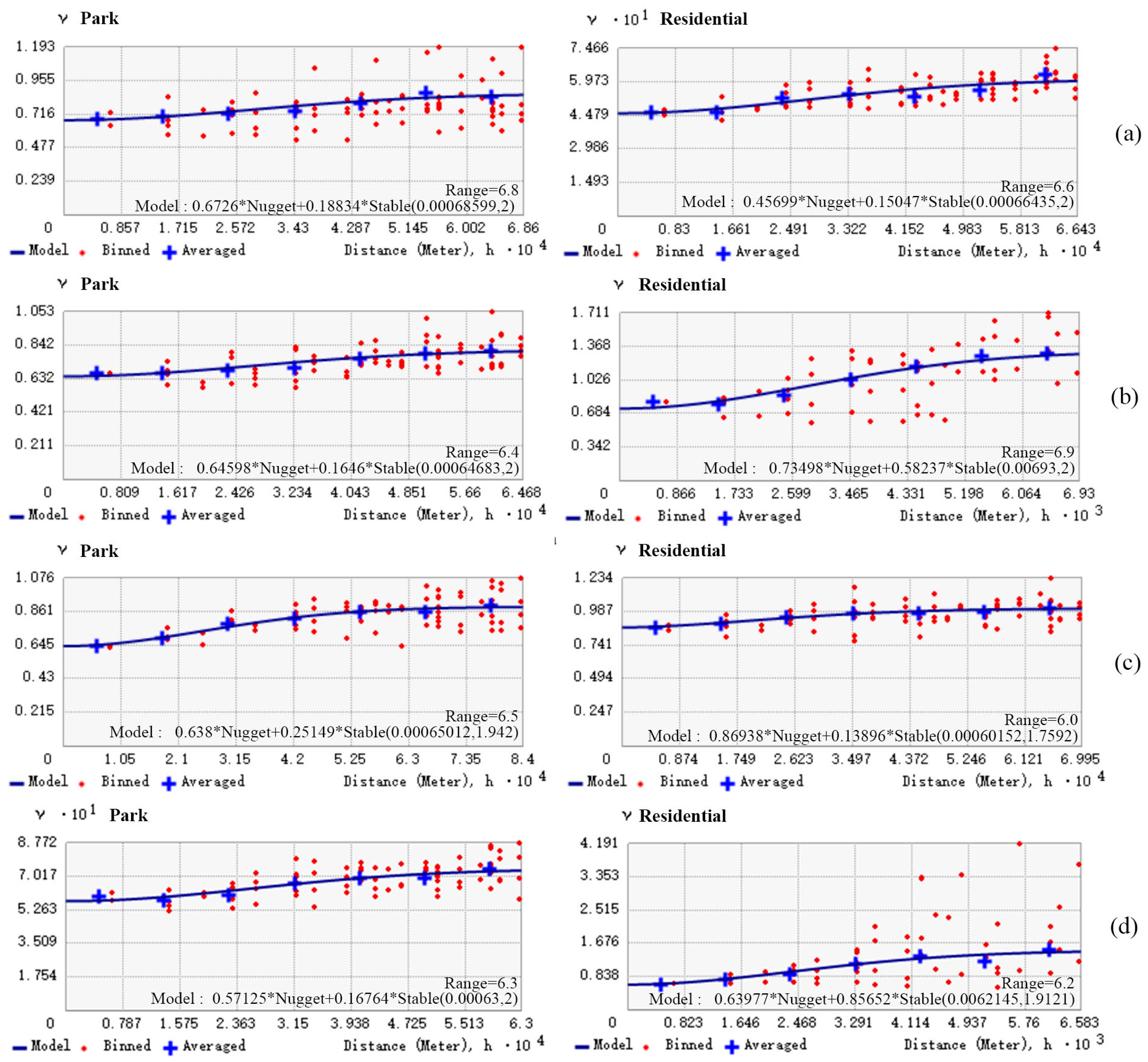 | Park | GCR | The ratio of green space to buffer zone area in a single buffer zone | (%) | Where is the area of greening space in the i-th buffer (m2). A is the area of a buffer (m2). |