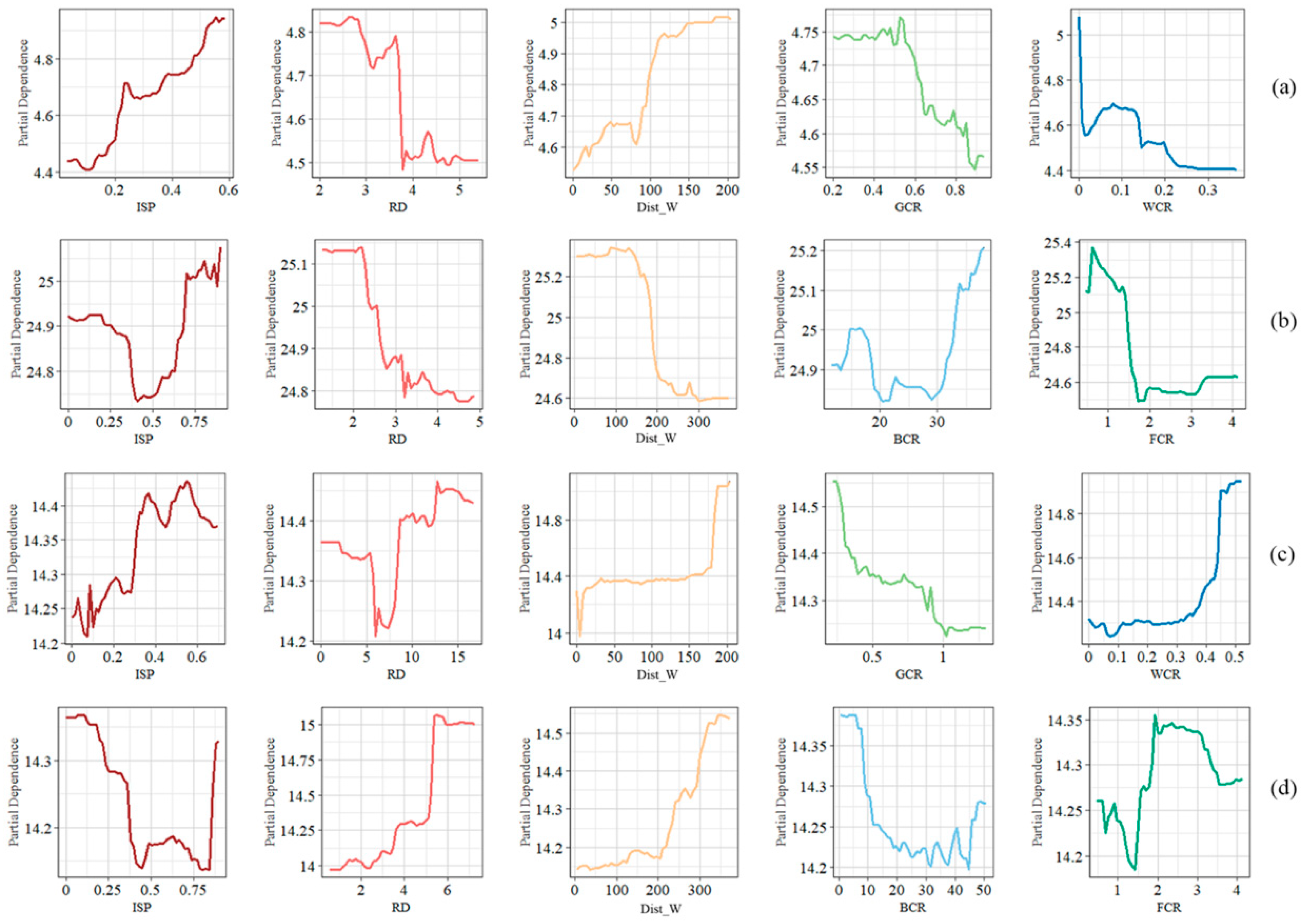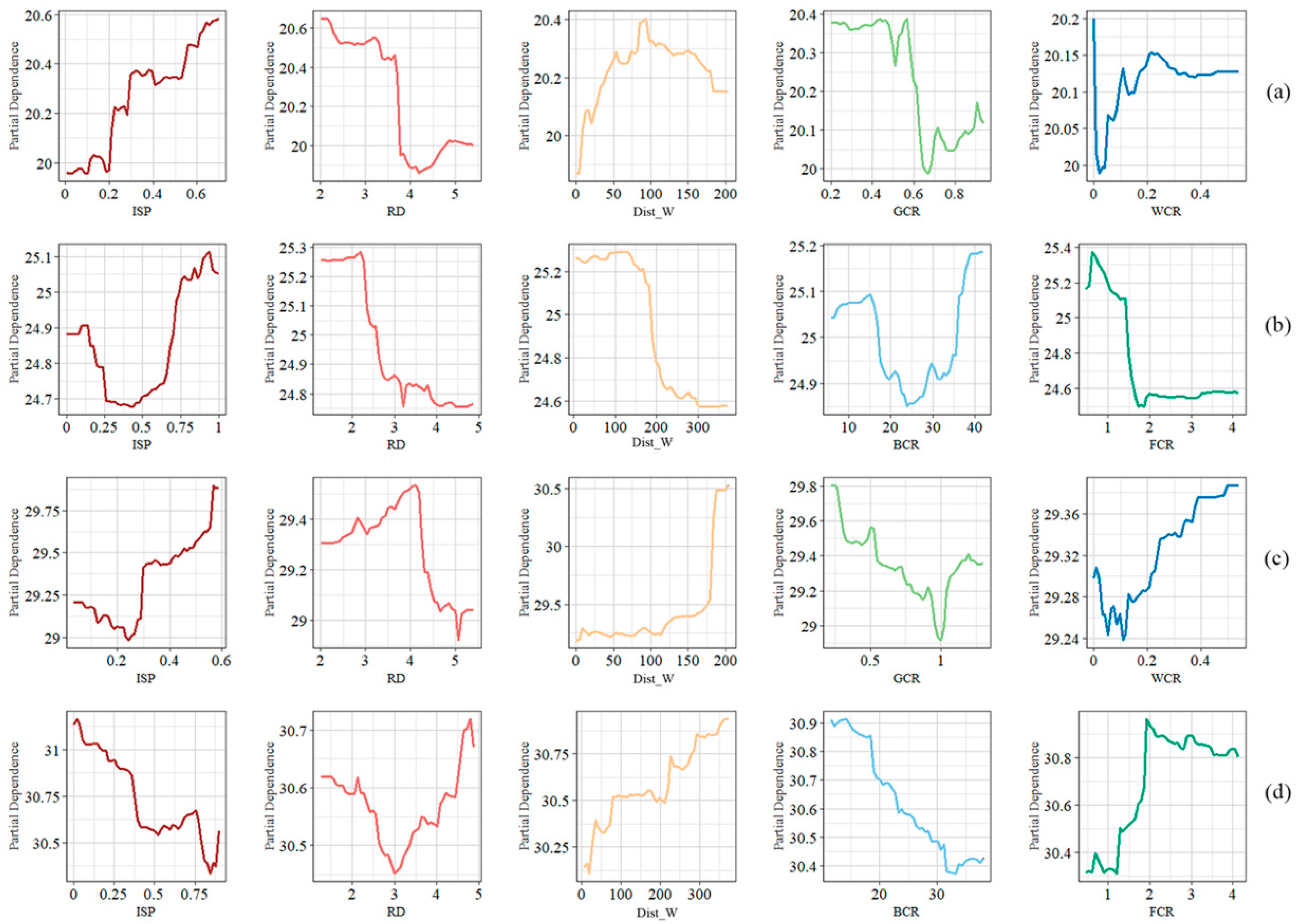 3.5. Partial Dependence and Threshold Effects of Driving Factors