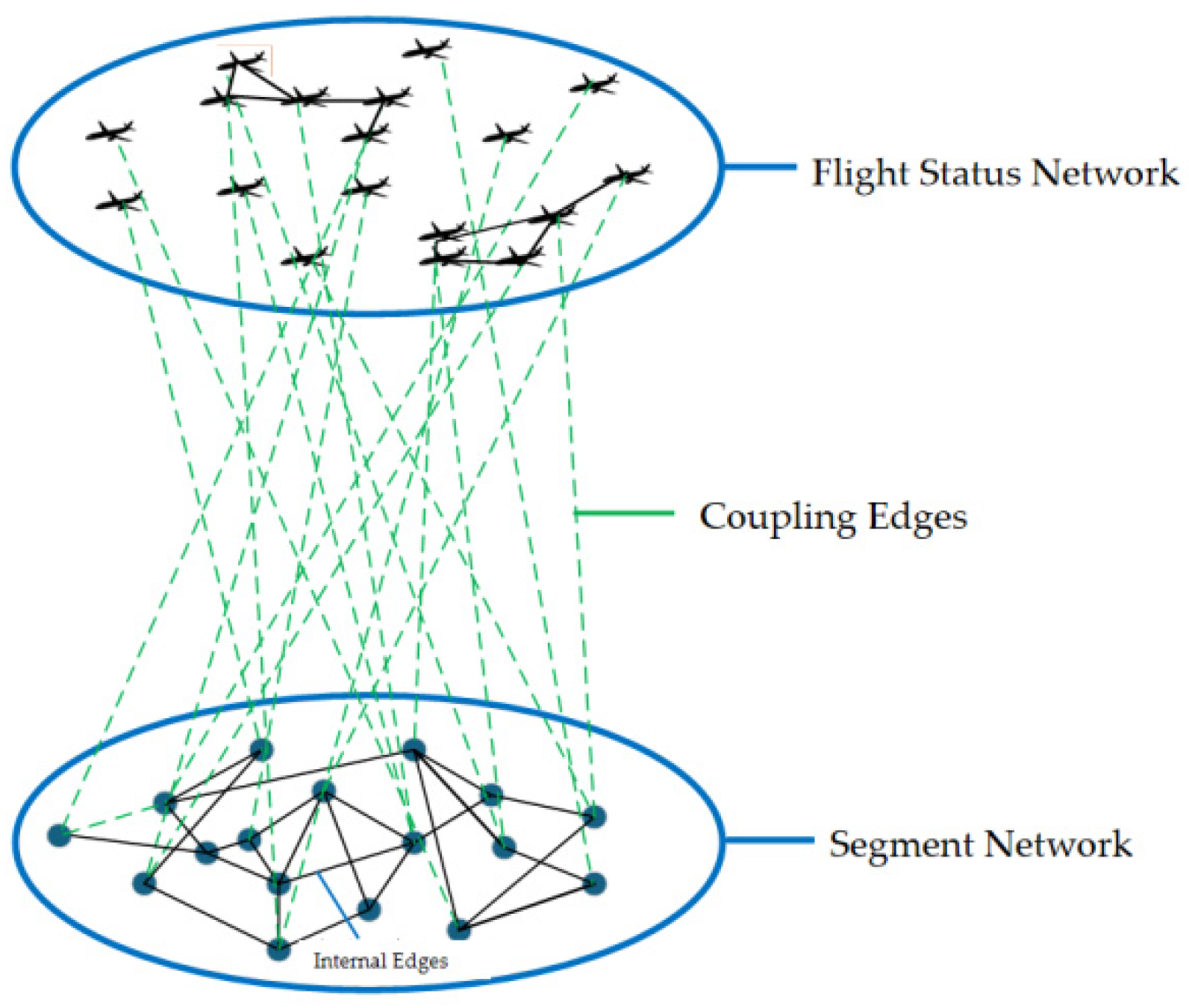 Figure 5. Schematic diagram of the air-route–flight state interdependent network model.