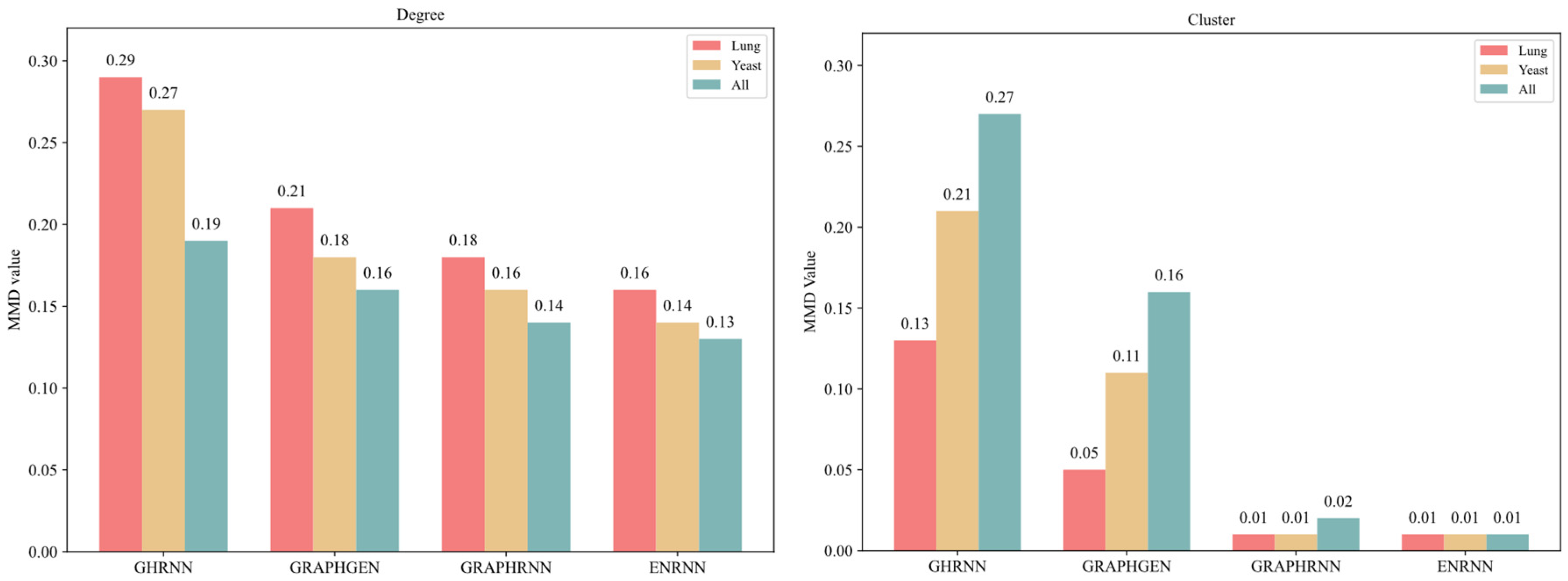 - Topology Similarity. The Maximum Mean Discrepancy (MMD) measures the difference between two distributions, with smaller MMD values indicating a greater similarity. Therefore, calculating the MMD between the generated and real graphs can provide an effective evaluation of the virtual topology quality.